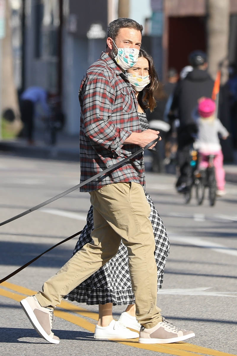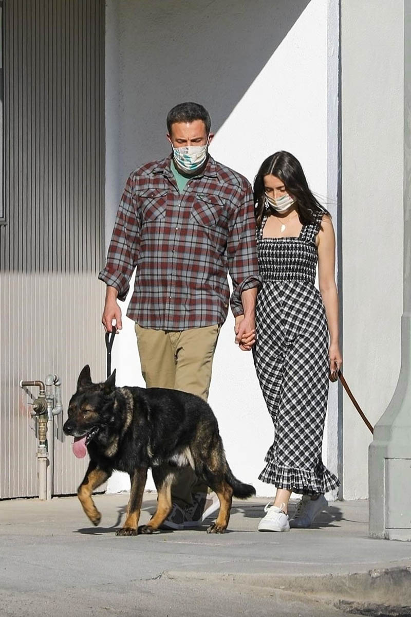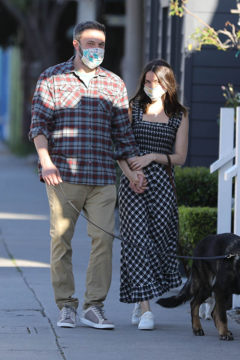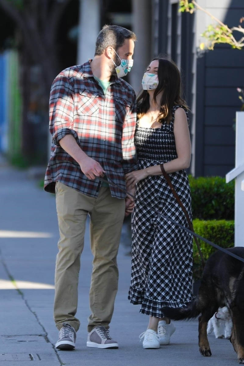 Ana de Armas & Ben Affleck get early morning coffee and walk their dogs together while finally wearing masks when outside. (April 10, 2020) pic.twitter.com/V85b2tBJiF