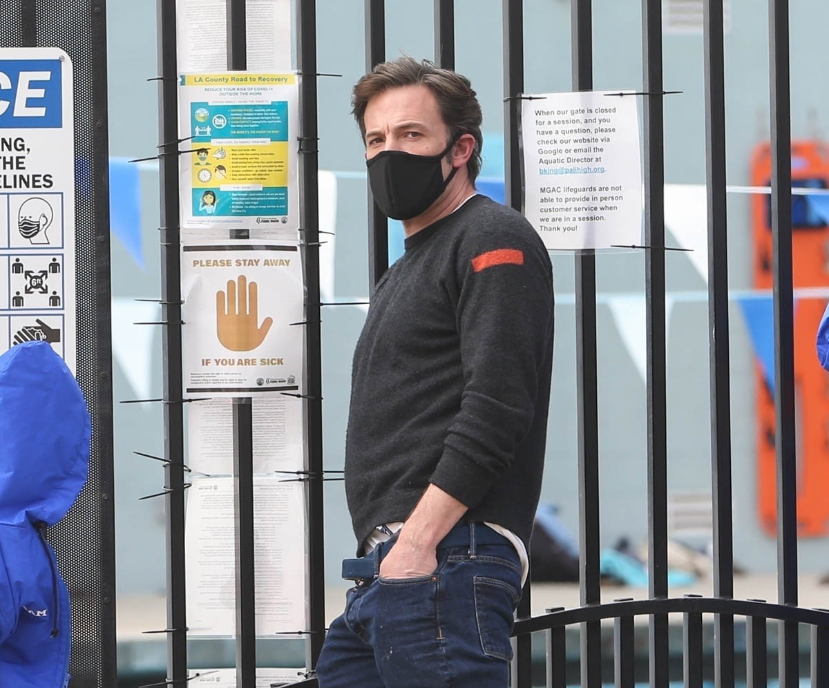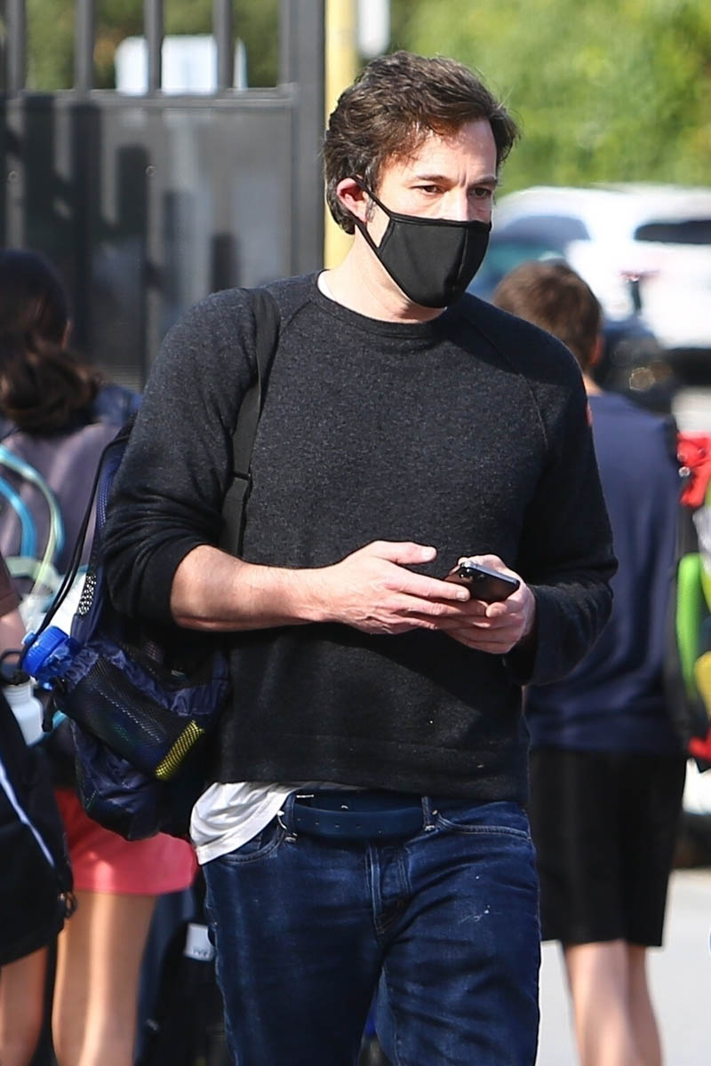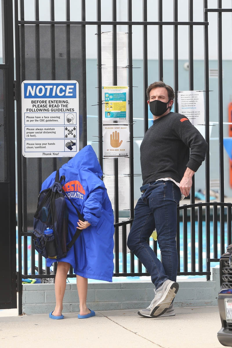 As for Ben, he’s been shooting The Tender Bar in Boston and evidently flying back to LA on weekends to see his kids. Here he is picking up his son from swimming lessons. Really enjoying this hair length on him. Another interesting sighting, especially if you’re into celebrity friendships – Christian Bale was seen leaving Ben’s this weekend too after paying him a visit. Just two Batmans hanging out on a Saturday.