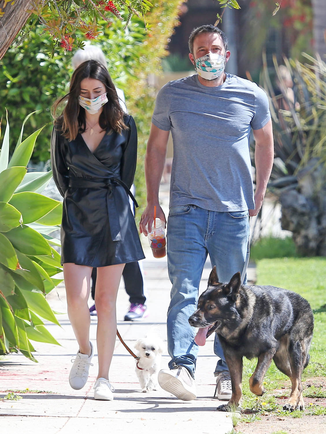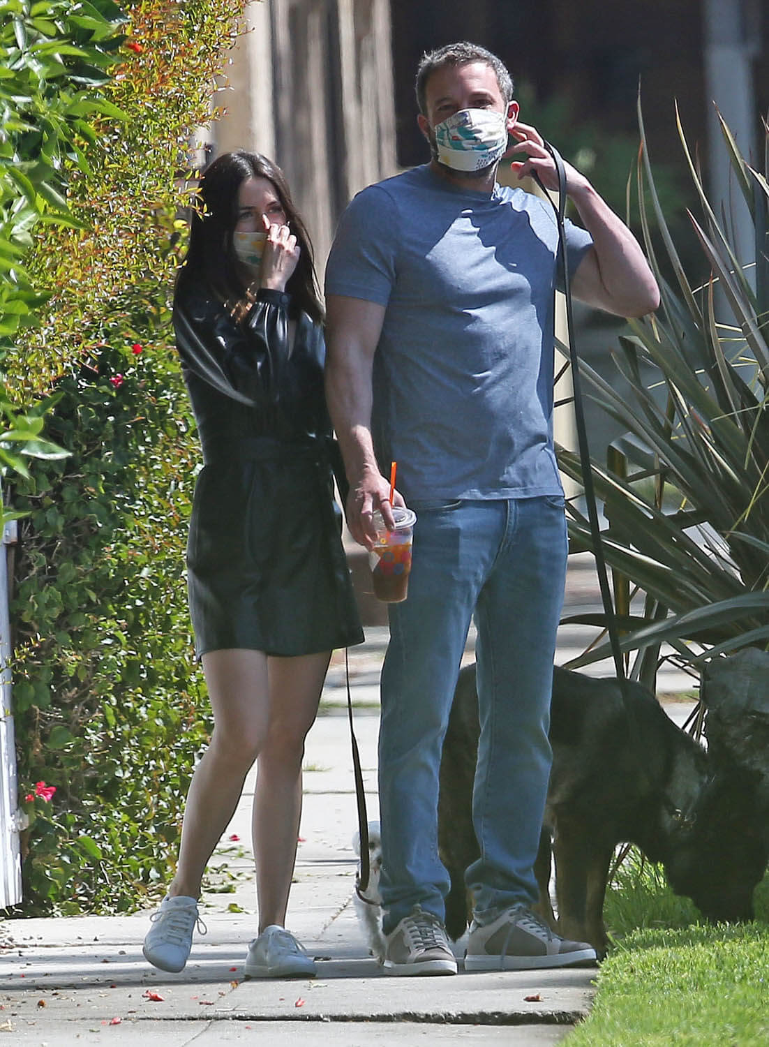 Yes. She is serving looks! Here’s the latest – on their dog walk yesterday, Ana wear a leather or faux leather dress. At one point she and Ben got their leashes caught and ended up with him looking like he was putting his arms around her from behind. I’m sure there’s a joke there for “AJ” but not sure if he’ll be able to make it. I hope so. And Ana should too. This is unintentional accidental GREAT publicity. If only she could see it that way.
