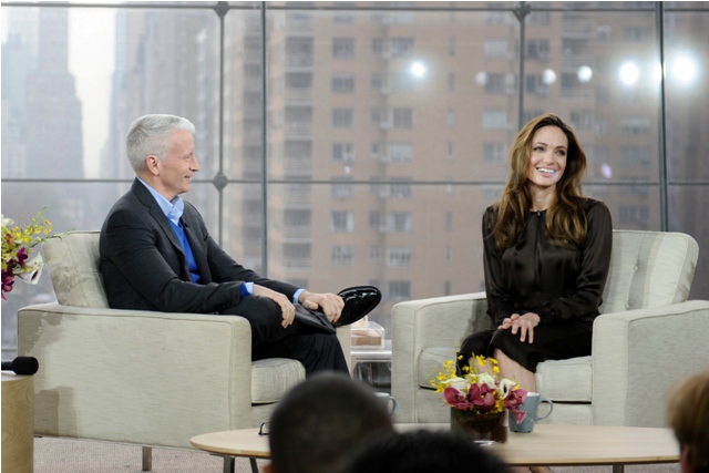 How awesome is this picture of Anderson Cooper straight up fangirling for the Jolie on his show? The interview airs on Monday and, so far, at least from the excerpts they’re released, it’s more of the same Angelina saving the world, loving her kids, not reading the tabloids, whatever.