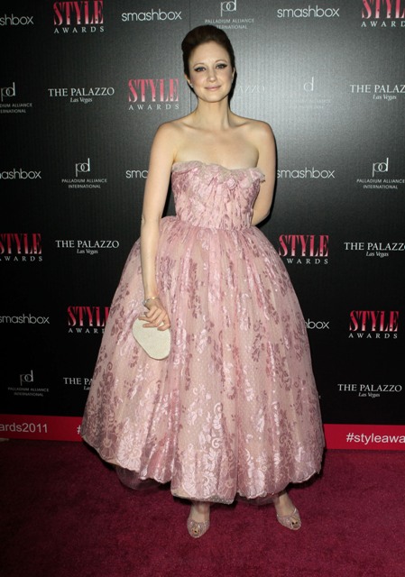 Like here, last night at something called the Hollywood Style Awards (which really weren’t very impressively attended considering the name), here’s Andrea going super Disney princess, a heavily lined lid, and a very pale lip which... doesn’t feel like it all goes together, you know? I also think I prefer her with darker hair.