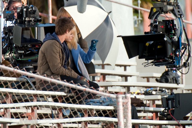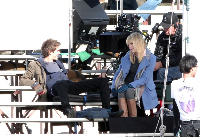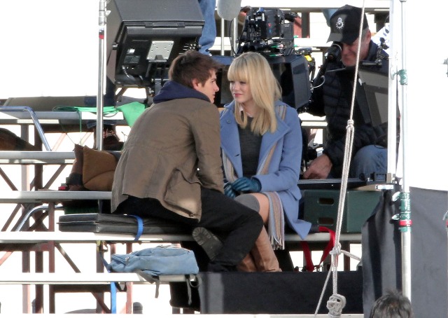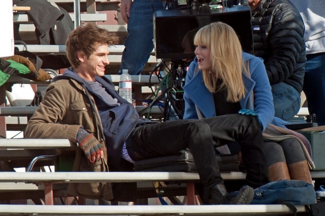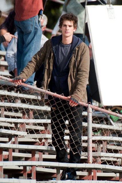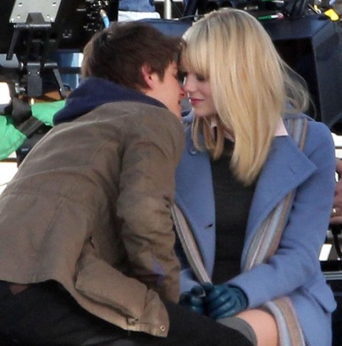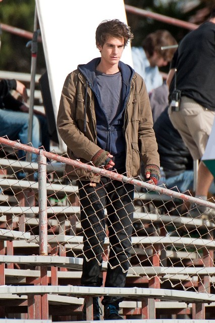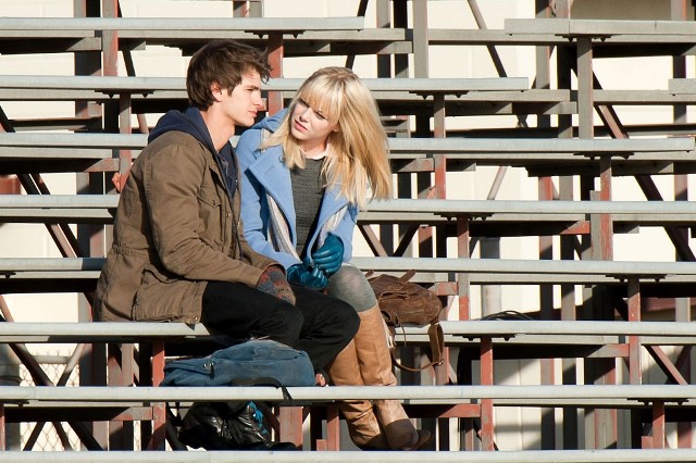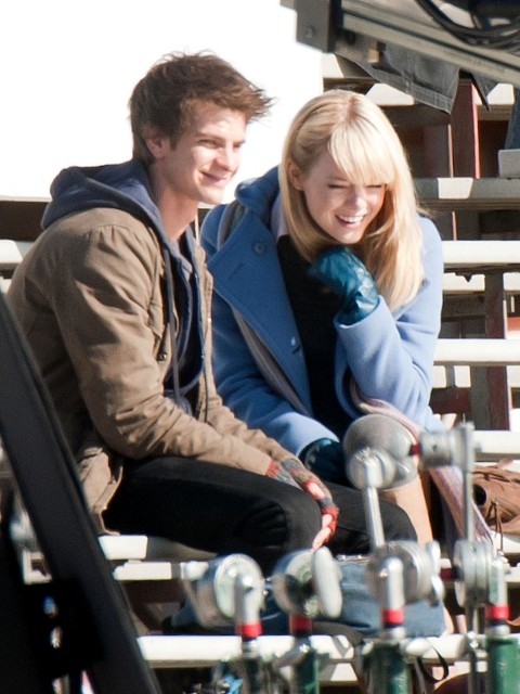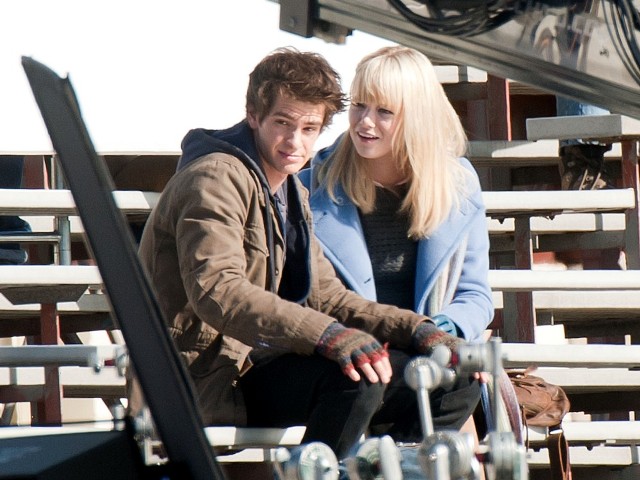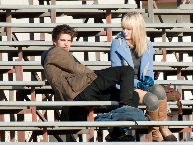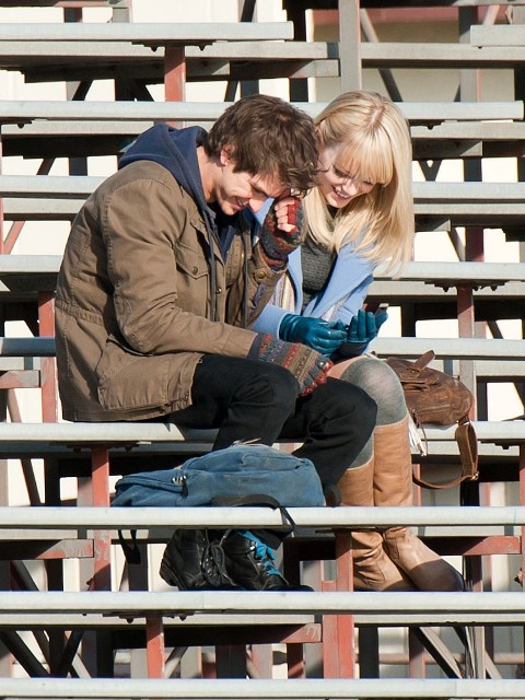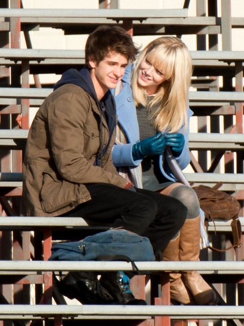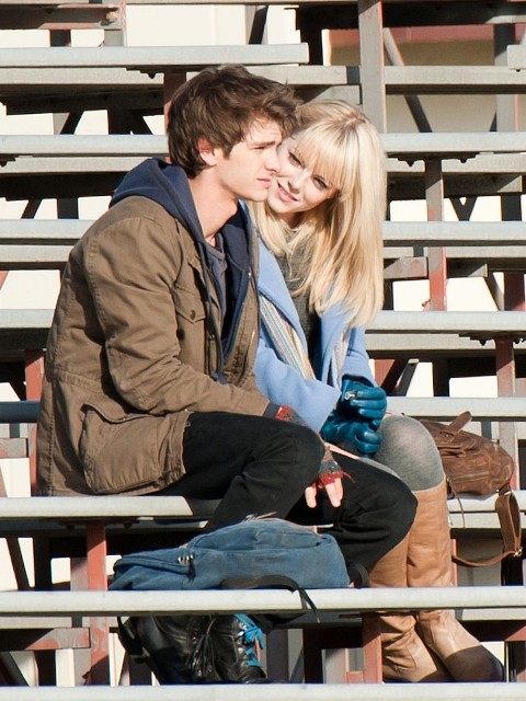But I do love the bleachers. I love it when Heath Ledger sings across the bleachers to Julia Stiles in 10 Things I Hate About You. I love when Gary Bertier’s mother walks into the bleachers during the championship game after her son is paralysed in Remember the Titans. For some reason I always think Molly Ringwald is sitting in the bleachers when Andrew McCarthy’s Blaine comes to talk to her in the rough kids section of school. They should make an entire movie, like a Love Actually style movie, in the bleachers. Is there a bleacher montage somewhere out there? They should make that too. And include this scene out of the new Spider-Man, featuring Andrew Garfield and Emma Stone, shooting yesterday in LA.