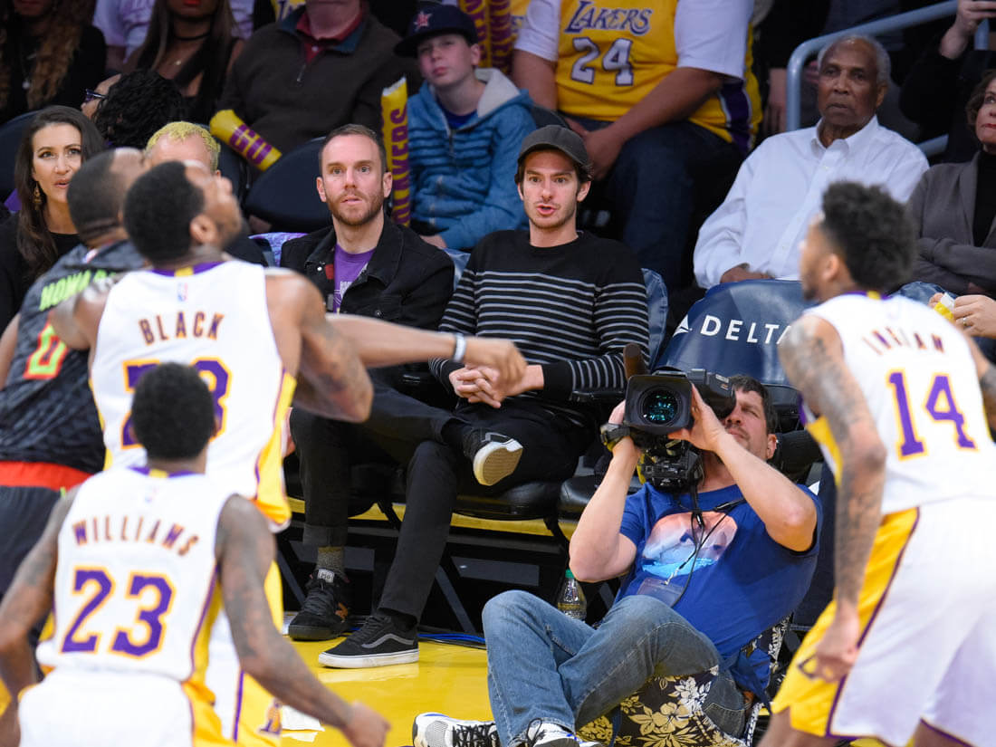 Here’s Andrew at the Lakers game last yesterday and Emma in New York today promoting La La Land.