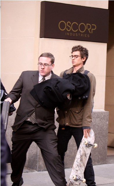 Anyway, comic geeks out there are all jizzy about the Oscorp sign in a few of the shots. It’ll be over a year before they find out. The Amazing Spider-Man opens in July 2012. They’re supposed to wrap principle photography very soon. And now everyone is wondering whether or not they’ll give a tease at Comic-Con, especially since the movie opens BEFORE San Diego Comic-Con next year, 2011 might be their only shot.