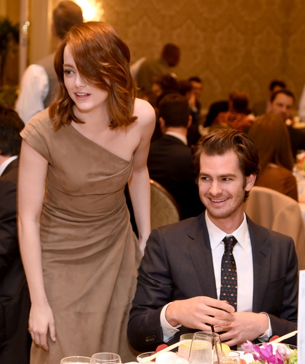 As you saw on Sunday, Andrew Garfield gave Emma Stone a standing ovation when she was named Best Actress Comedy/Musical. There was a report, I think it was in Page Six, earlier this week about how they were allegedly trying to avoid each other on Golden Globe night which seemed pretty ridiculous considering this is what they looked like just two days before at the AFI Awards: