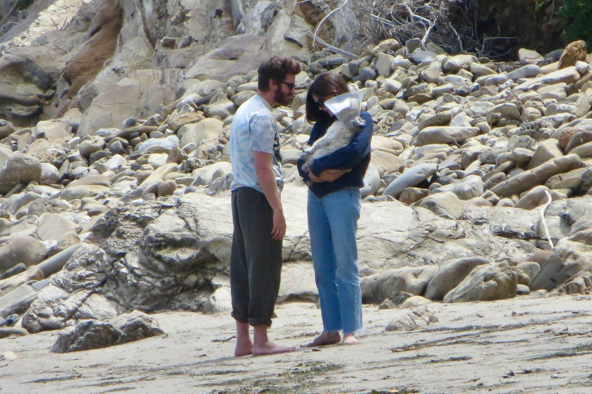 Andrew Garfield and Monica Barbaro spent Memorial Day in Malibu. They were seen hanging out at the beach with Monica's dog, Auggie, and picking up groceries with some friends.