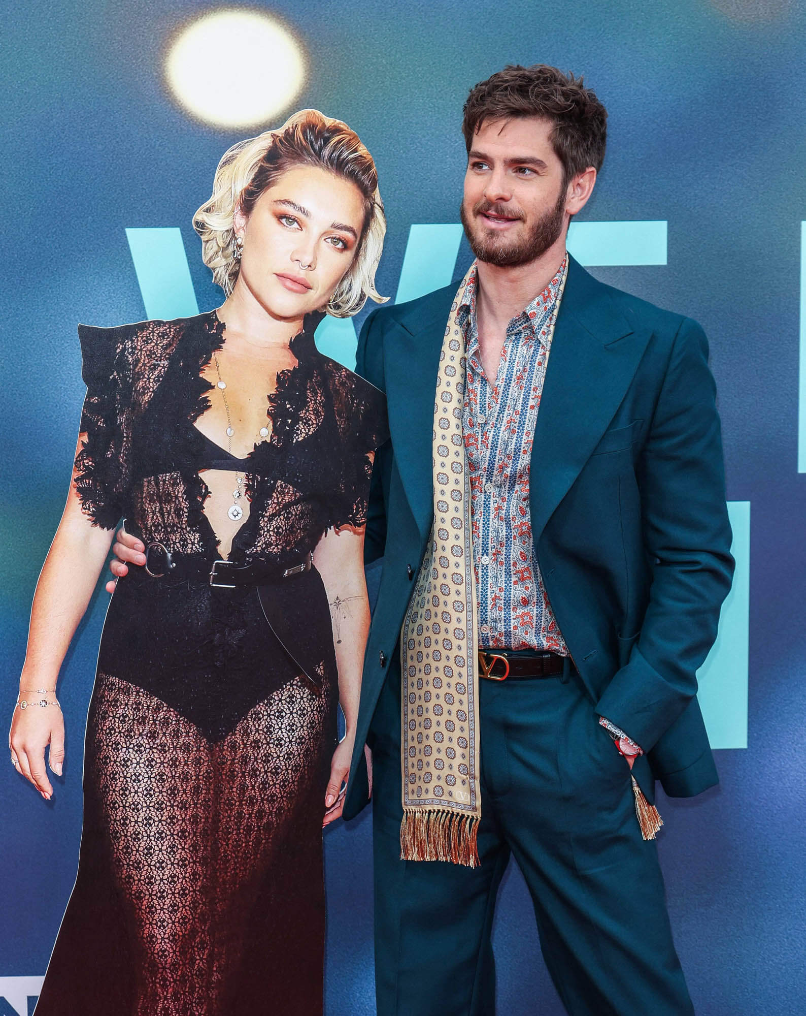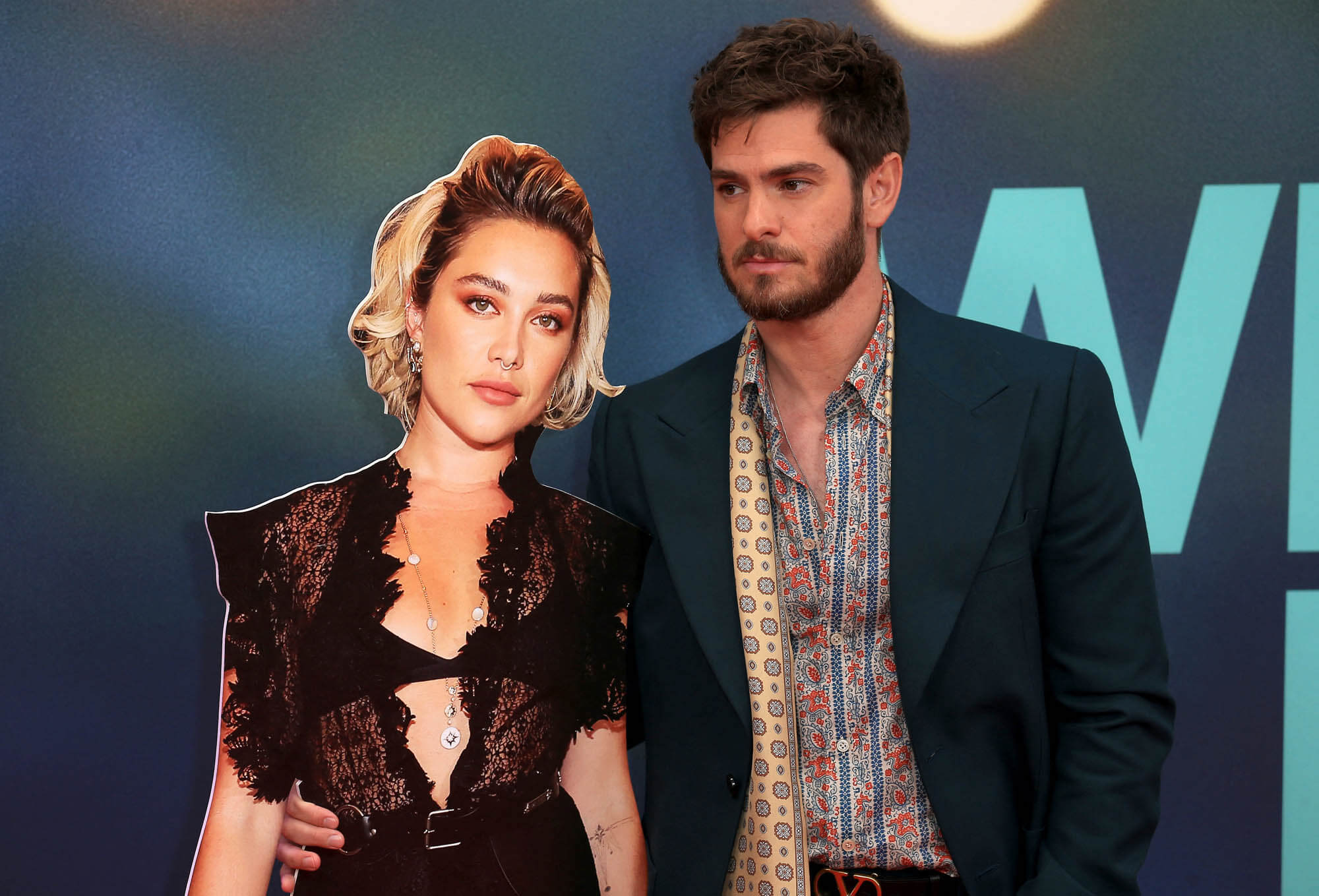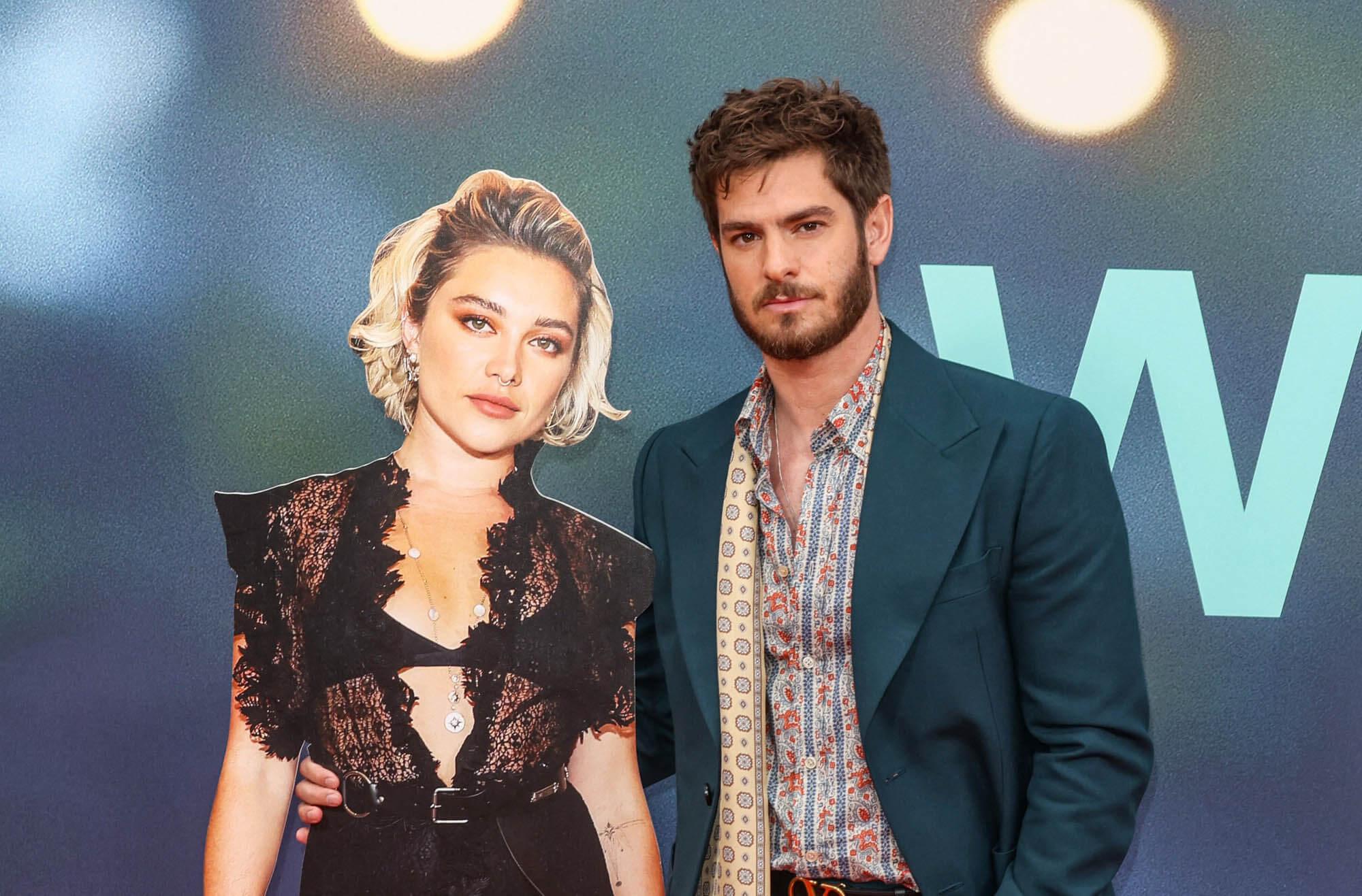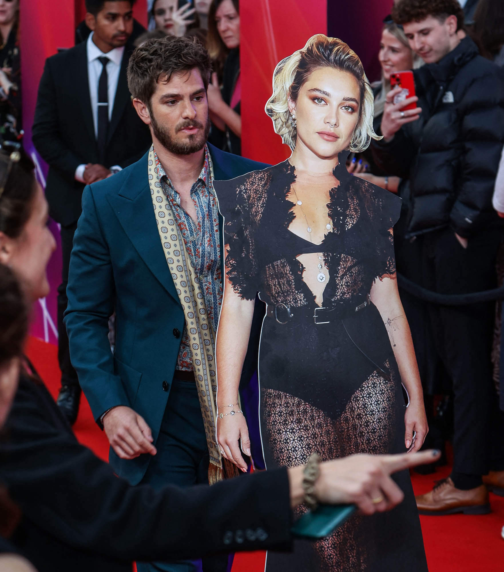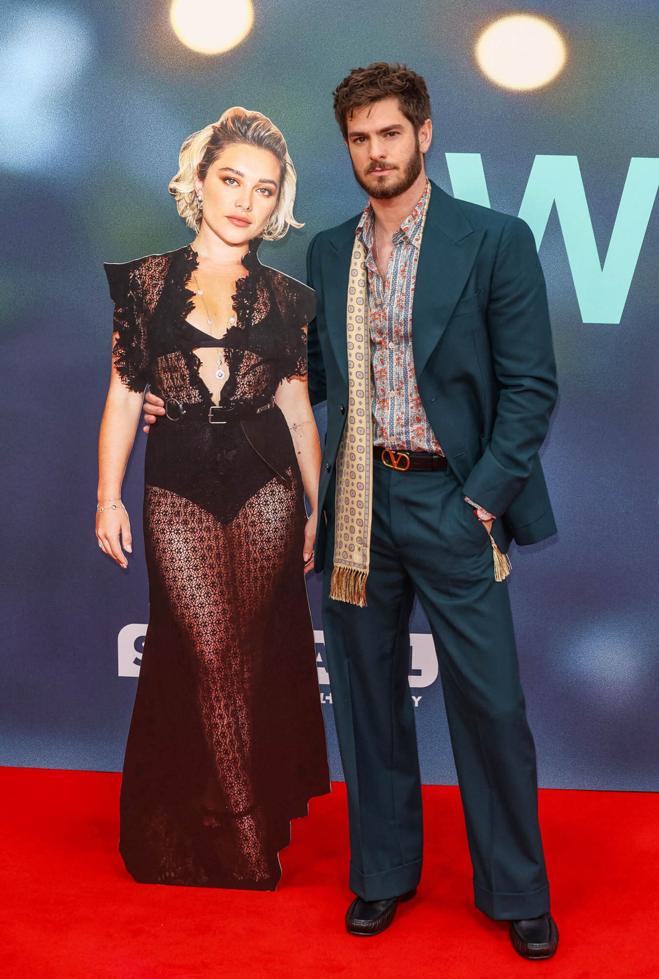 Attached: Andrew (with a cardboard cutout of Florence Pugh) at the 'We Live in Time' premiere at the 68th BFI London Film Festival in London on October 17, 2024.