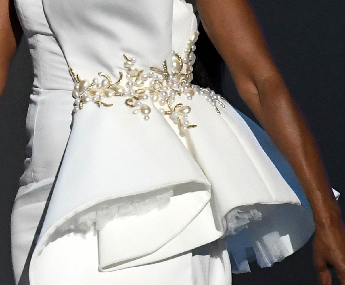 She is the sleekest, most stylish woman at these awards and nothing as petty as a live television show, or mispronouncing a name, or even genuine joy at presenting with Tiffany Haddish, who was overjoyed to do the Wakanda salute with her, is going to interrupt her ridiculously sleek style.