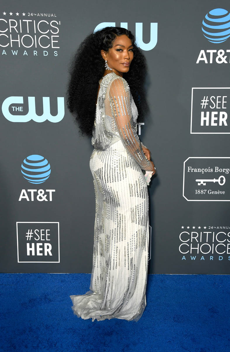 Does it really matter what she was wearing when the hair is doing all the work? This hair could save any dress. It may even have been able to save Lady Gaga’s hideous Golden Globes dress. Angela Bassett’s dress, if you care, for the Critics’ Choice Awards was Jenny Packham. Like I said, I don’t think it matters.