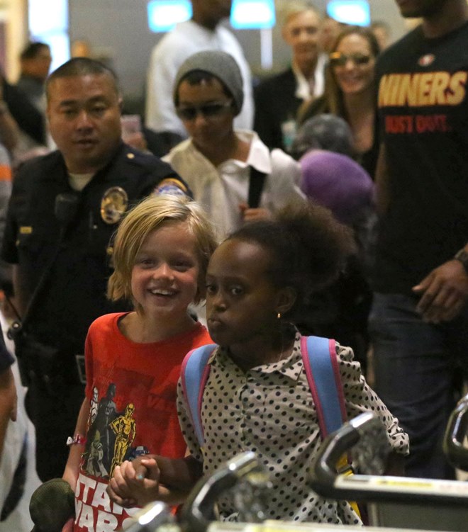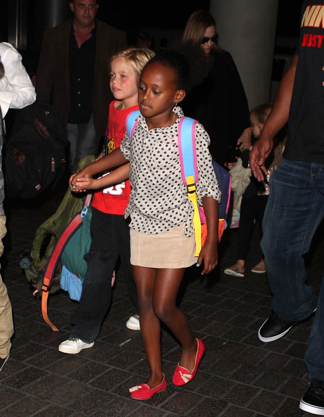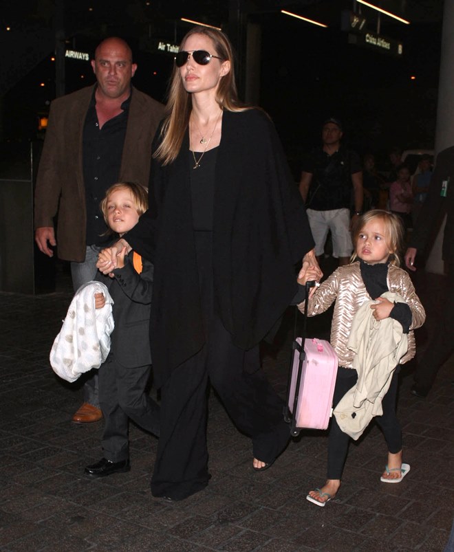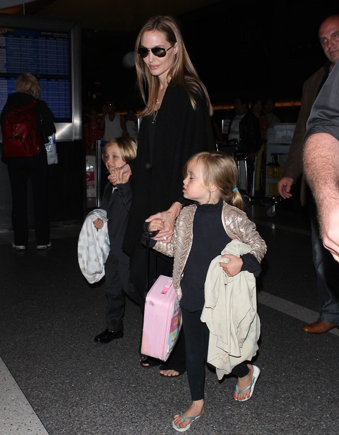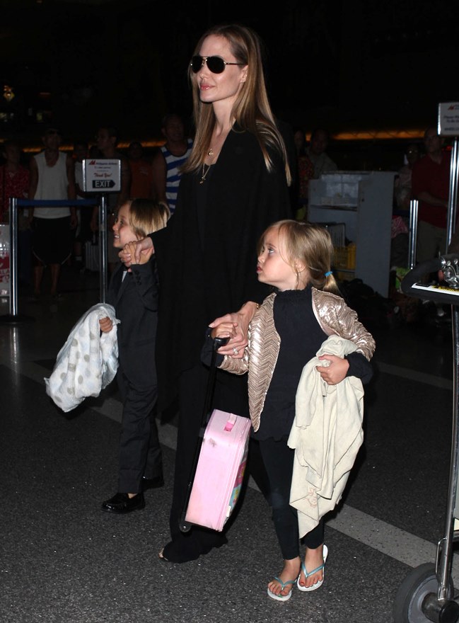 Anyway, I’m sure Shiloh is a very experienced, well-behaved traveller. It’s Vivienne, with the Jolie’s hand gripped around her wrist, who might be have inherited her older sister’s naughty streak. Or maybe Knox. Those are some bratty eyes.