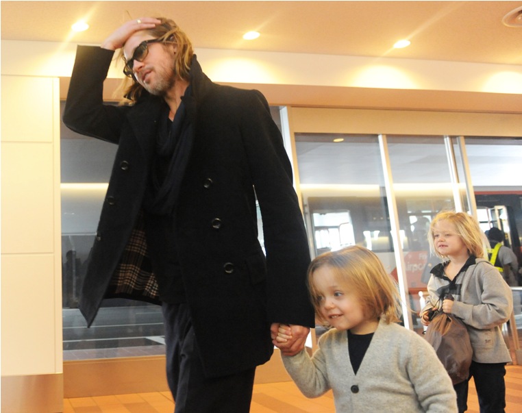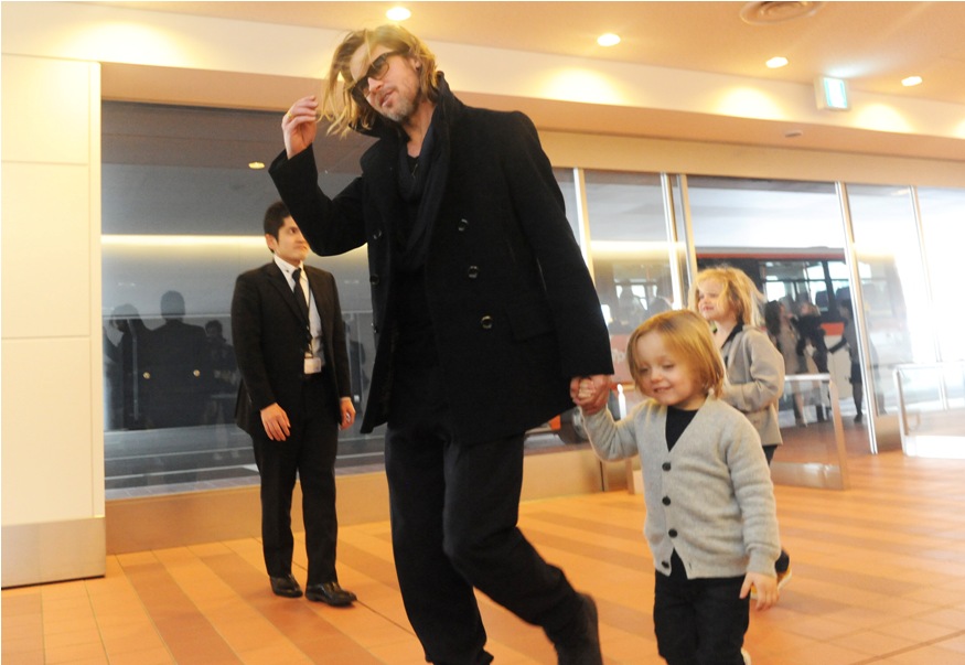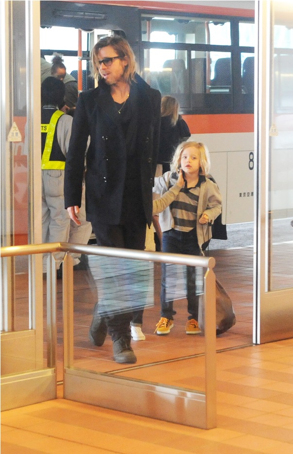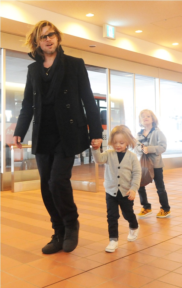 That’s the group of 8, arriving in Tokyo where Brad Pitt will be promoting Moneyball. They were previously in Hungary while he continued to shoot World War Z. As you can see, his hair is approaching Tristan Ludlow length. You like it? Of course you do. Or, of course you don’t. These two don’t exactly inspire objectivity.