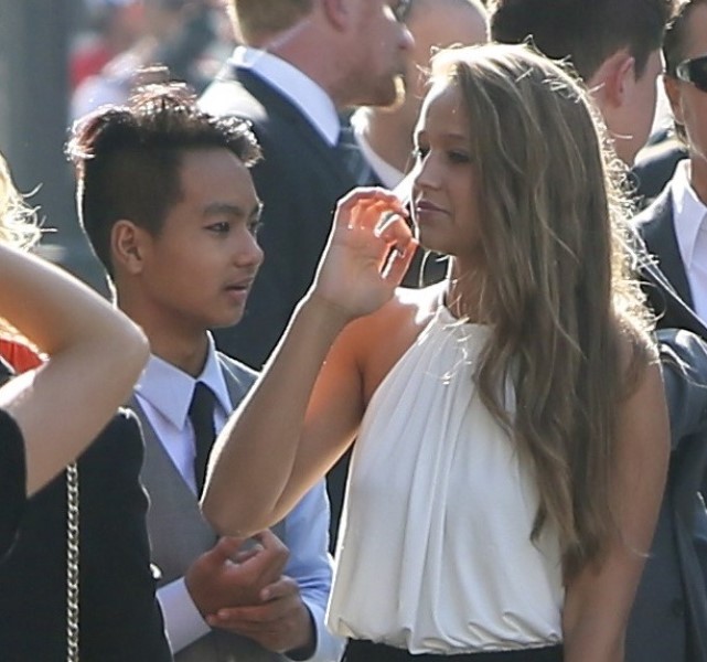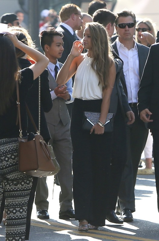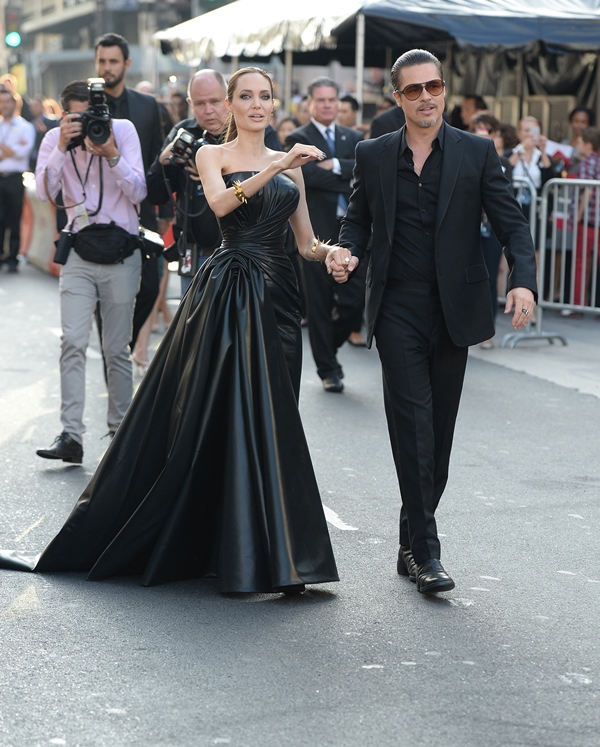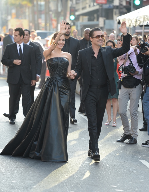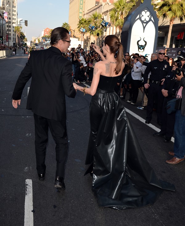 Brange at the Maleficent premiere last night. Sorry it took me so long to write about this. I’ve been waiting all day to buy those family photos – Brange posing with Maddox, Pax, Miss Zahara, Shiloh the Chosen, and Knox. But the agency is taking forever to figure it out. So we’ll come back to that in a separate post when they do. For now… yes… Vivienne, the Brange-child who was actually in the movie wasn’t there. No idea why. You’ll note though – photographers are saying that Maddox, who worked some of the carpet on his own, had a little friend with him. I want to know how Brange will be as parents to a hormonal teenager. I really, really want to know.