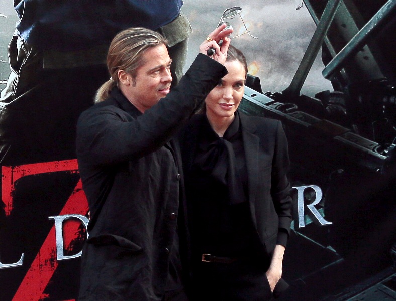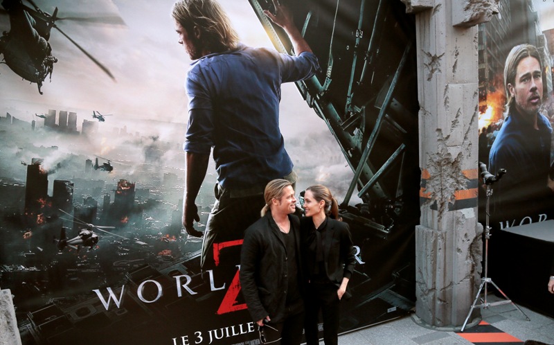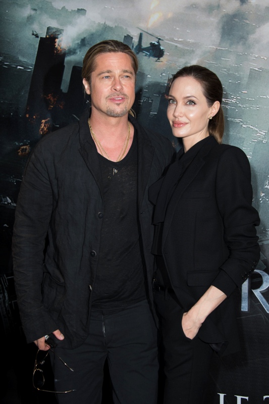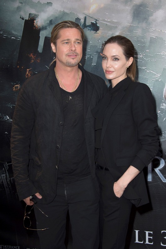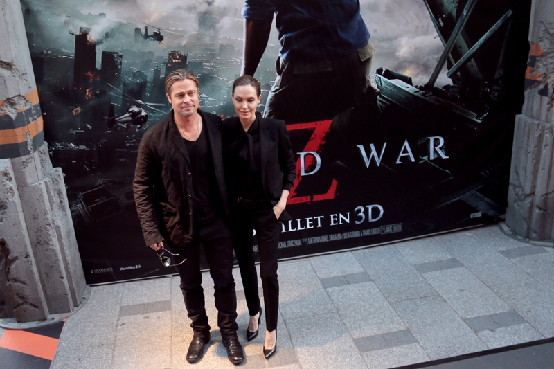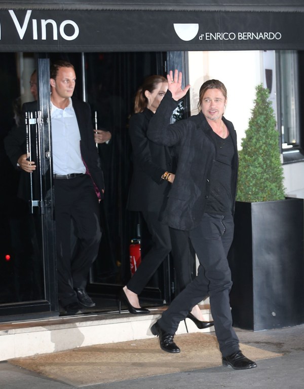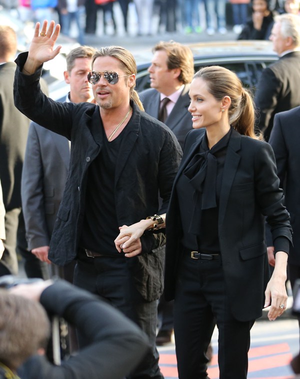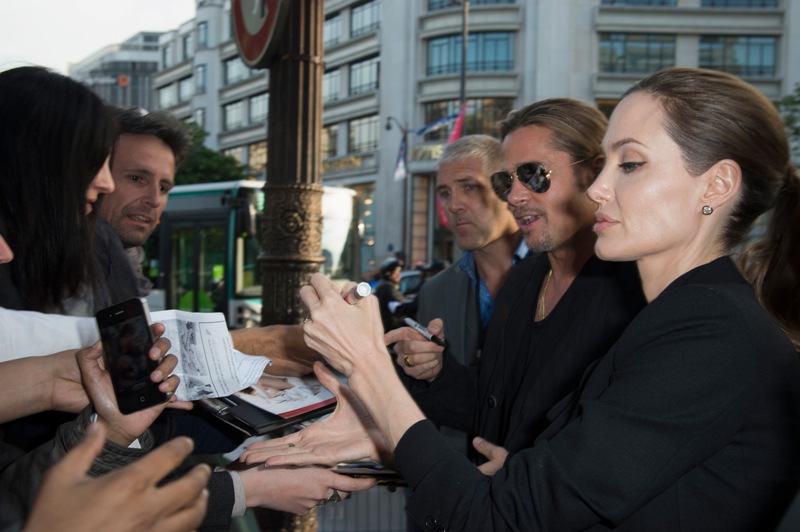 We might be getting Brange pictures every few days or so during this World War Z press tour. After the premiere in London on Sunday, Brange was in Paris last night to promote the movie. I heard there was no junket for this film which was why there was such a high concentration of media -- even more so than usual -- for the UK event. And if that’s the case, if there really is no junket, these carpets become even more important for the marketing.