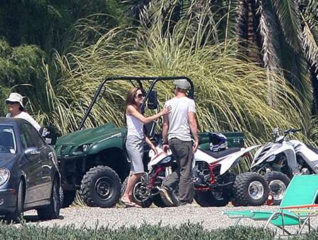 Anyway, as you can see, the Family Pitt is in tact. Love the one with Angelina holding Pax lying down on a lawn chair. And of course Brad the party dad zooming around with his boy. Word is he was livid last week at tabloid speculation over who would get to keep Shiloh, especially right before Maddox’s birthday. Not because the story was full of sh-t or because of break up reports but because of what he said to a source was the “irresponsible” emphasis placed on his biological child, to the point where Maddox, Pax, and Zahara are only just referred to as “the others”, that he would actually focus on custody of the Chosen One above all.
