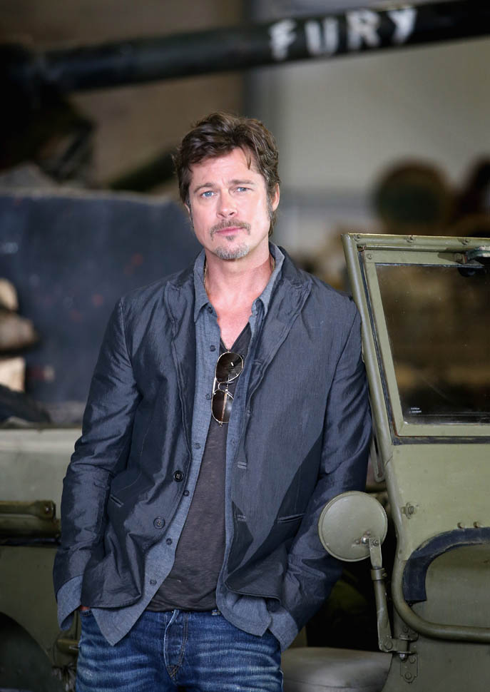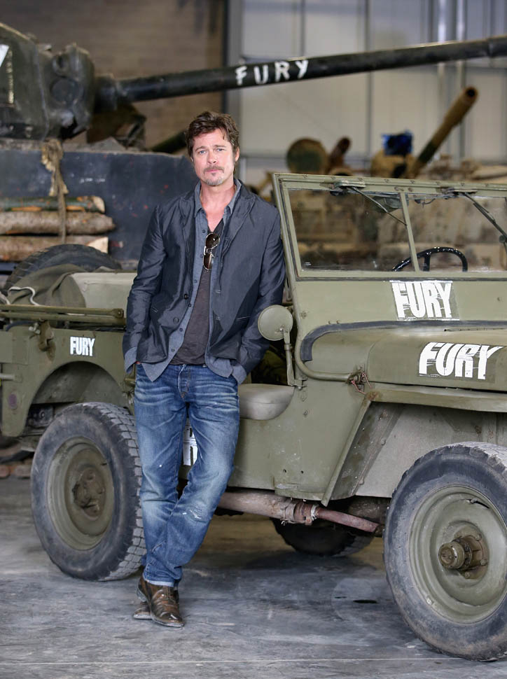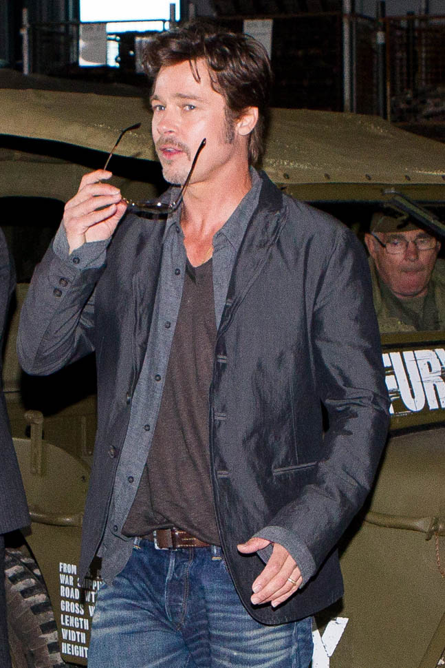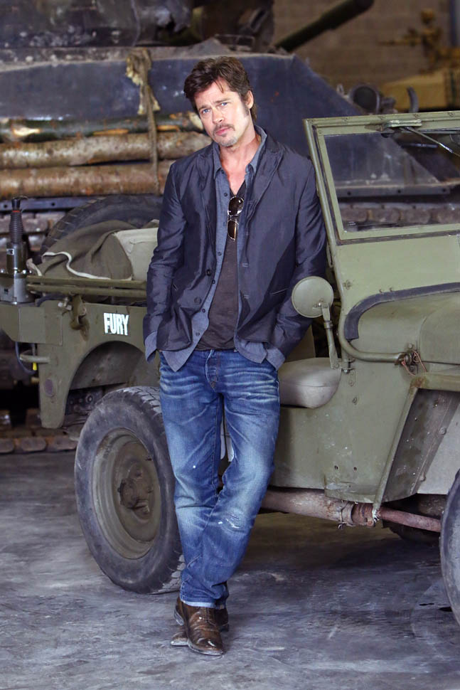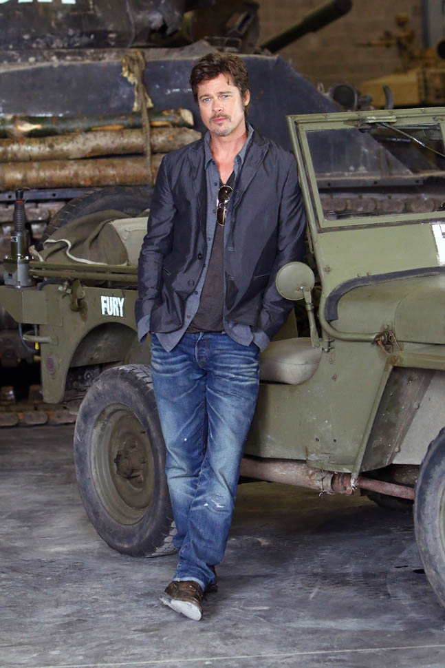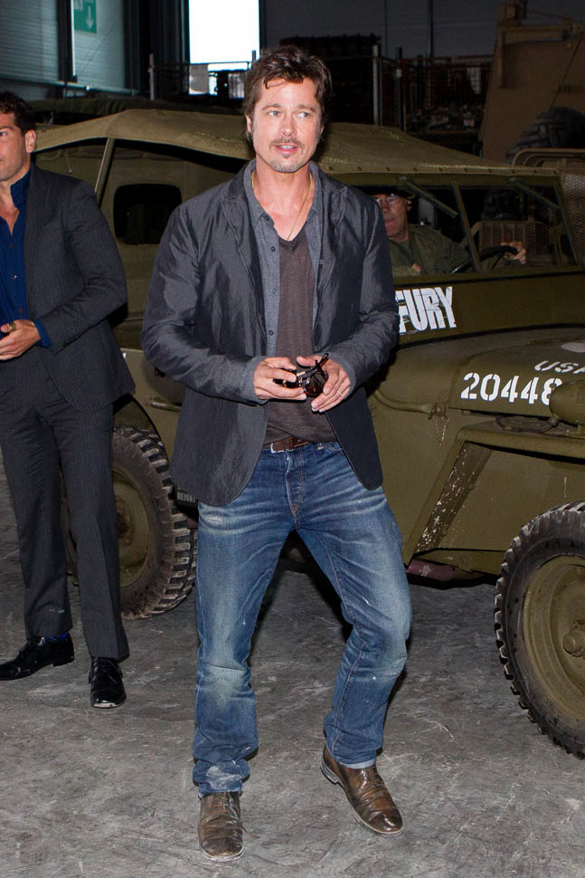 And of course, Brad was scheduled to show up in Dorset to promote Fury today anyway, wearing the motherf-cking sh-t out of those jeans. So, might as well do it while selling a film, a film that could contend at the Oscars, and earn him yet another nomination.