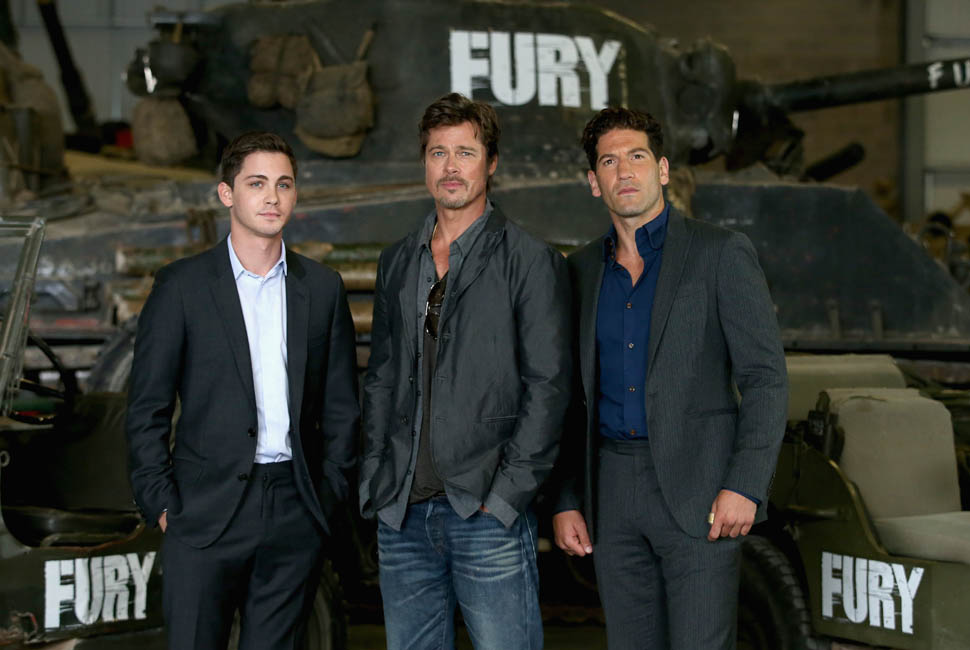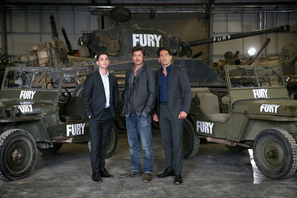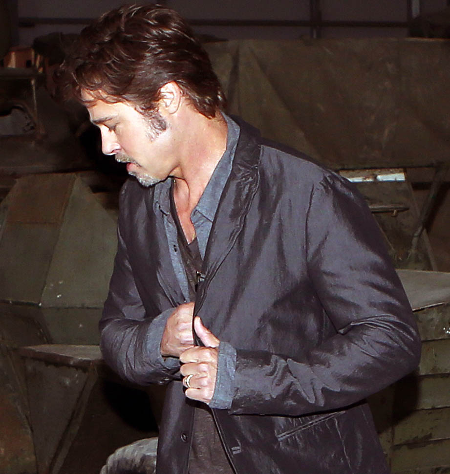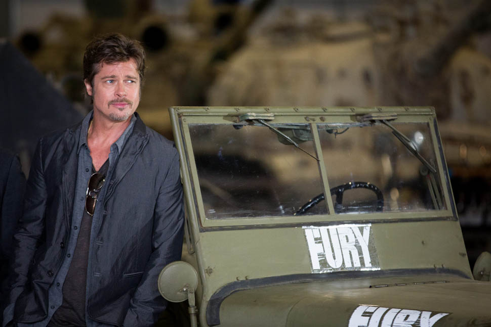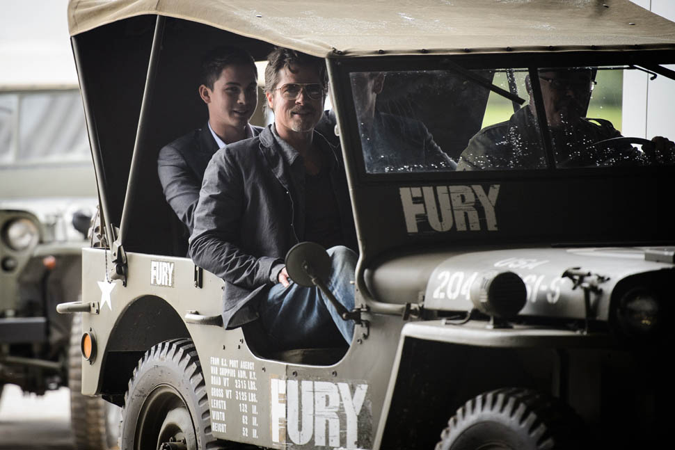 And of course, Brad was scheduled to show up in Dorset to promote Fury today anyway, wearing the motherf-cking sh-t out of those jeans. So, might as well do it while selling a film, a film that could contend at the Oscars, and earn him yet another nomination.