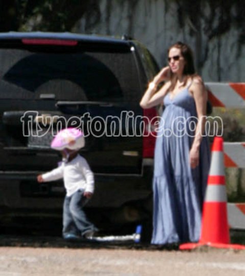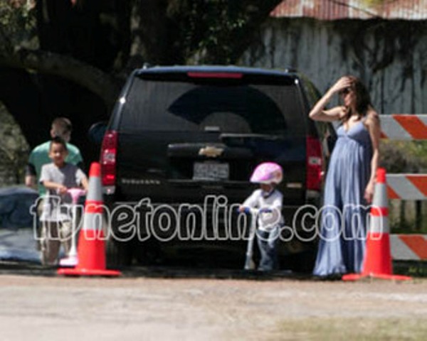 From Flynetonline.com – Angelina in a blue Gerard Darel with the kids in Texas. Love Miss Zahara.