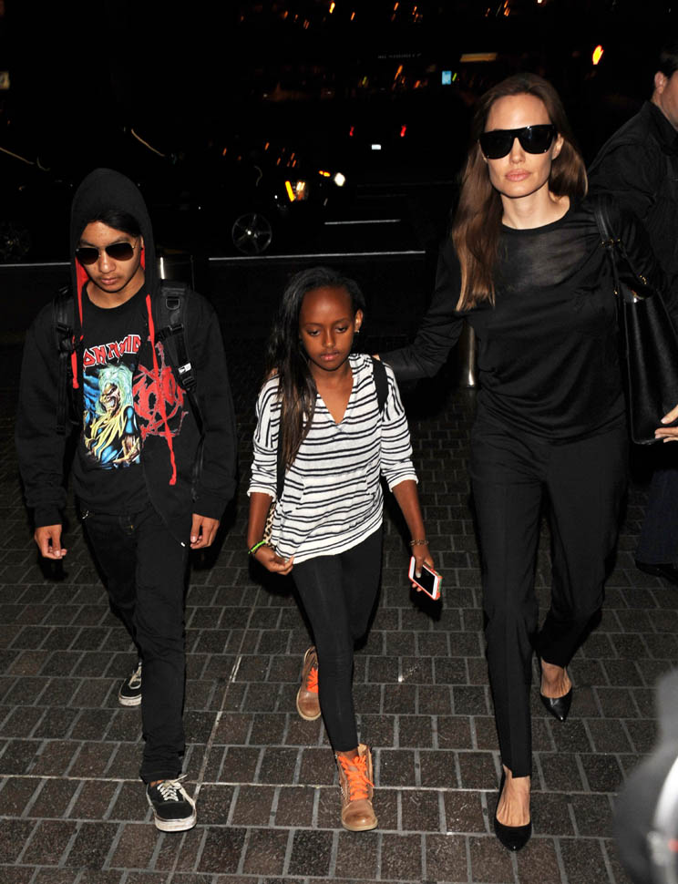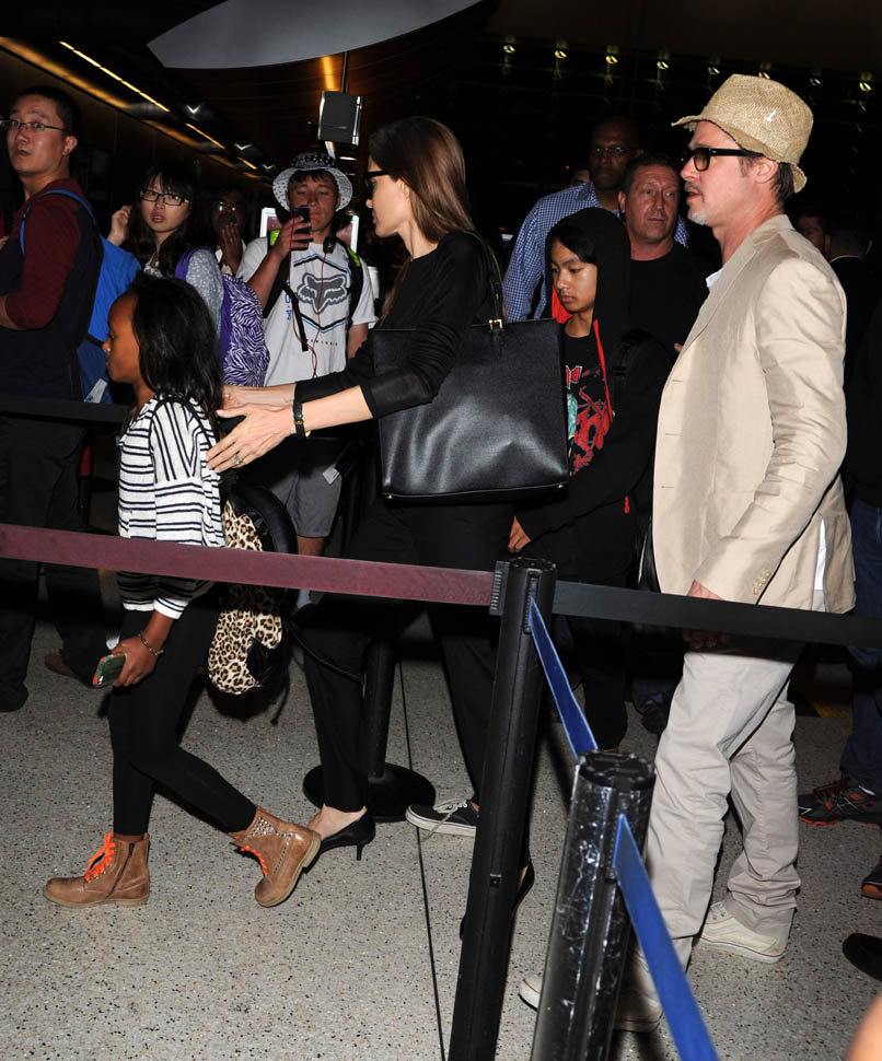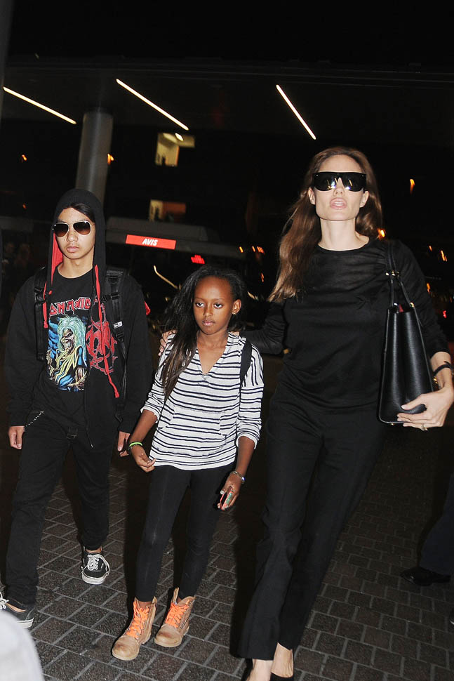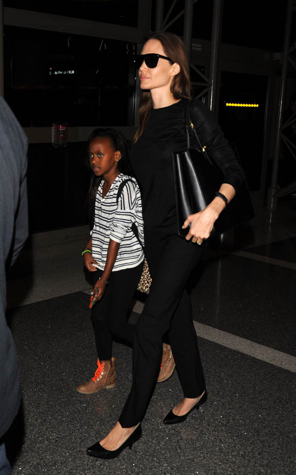 Brange, Maddox, and Miss Zahara were at LAX this weekend. As you can see, Angelina is wearing the dreaded kitten heel. There was a line in OITNB (I think episode 8 or 9) about the kitten heel:
