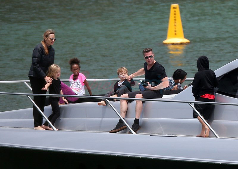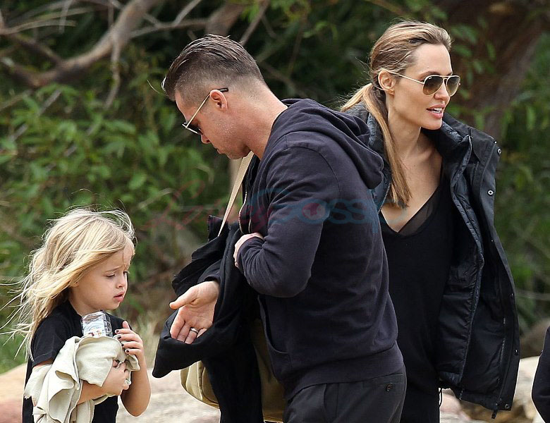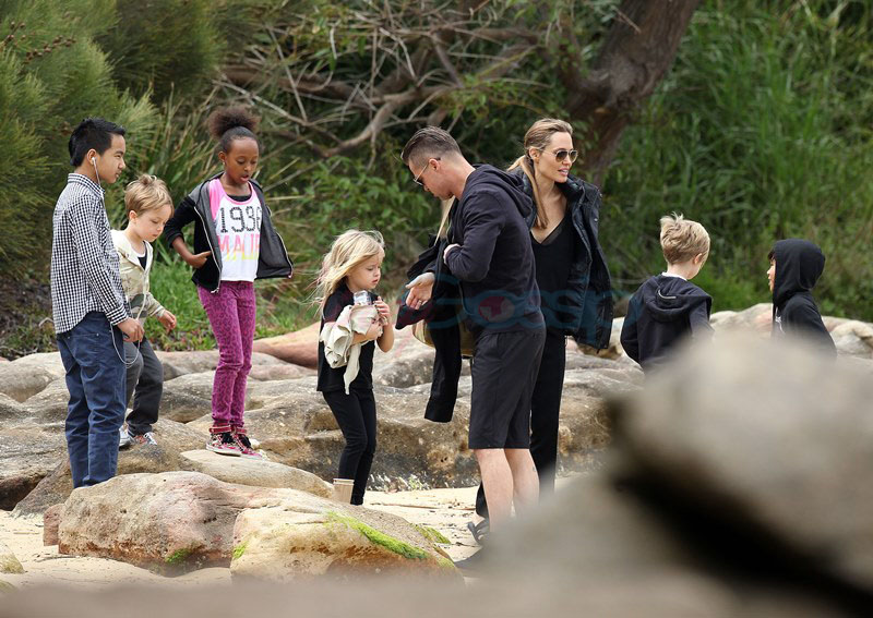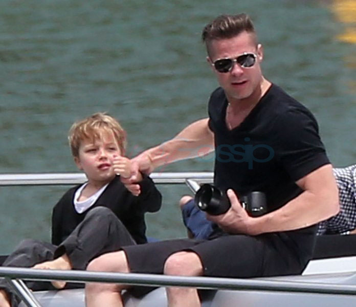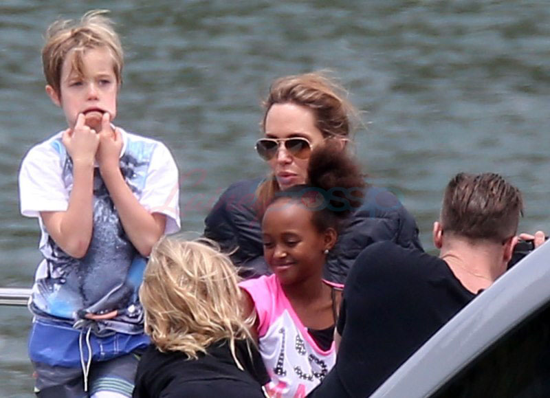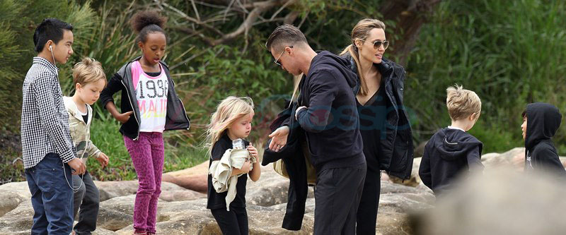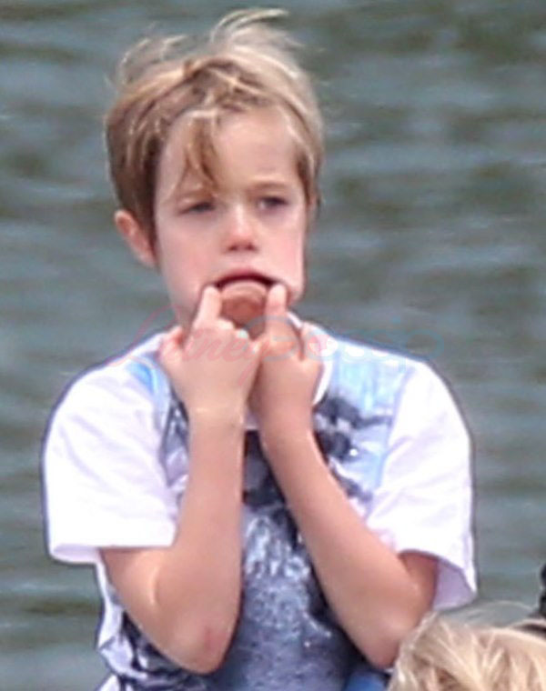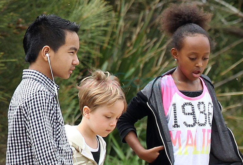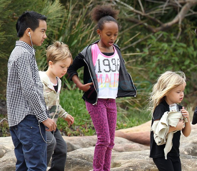 It’s the perfect setting – the sun is out and the children are unruly, especially as dad Brad tries to take pictures. Maddox is a proper young man, with a young man’s indulgent affectionate expression as he tries to cope with all his siblings, including The Chosen One Shiloh, a born entertainer, and her doppelganger little brother Knox, who has to be gripped by the wrist, just like his big sister was when she was younger. They are the wild ones to beauty queens, Miss Zahara and Vivienne, with the enigmatic Pax rounding out the group. All six, each with their distinct personalities, being raised in their parents’ spotlight, the most fascinating couple in the world and, therefore, fascinating by extension. Are their lives contained in a bubble? Given their peripatetic lifestyle, it’s not like they’re running down the street hanging out with other kids on the block. This family comes with built-in playmates. More on that note in the next post. (There are so many new Brange photos from this weekend, we’re going to split them up.)