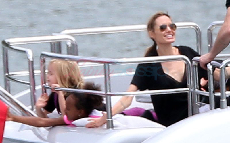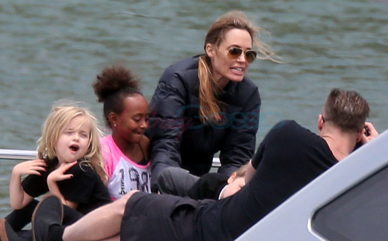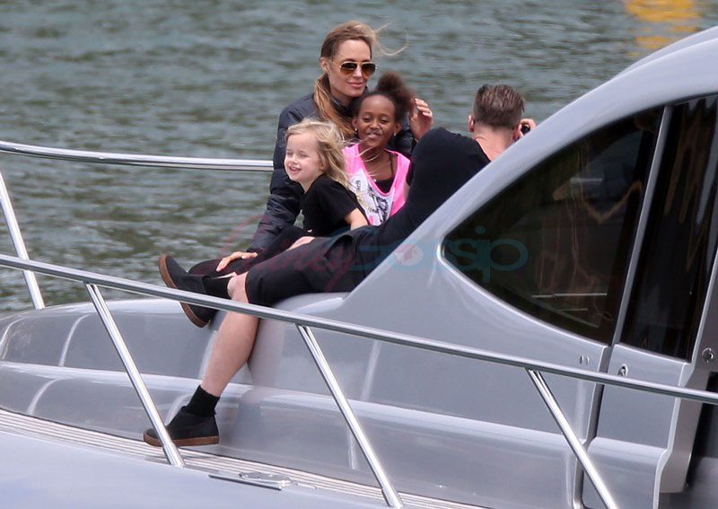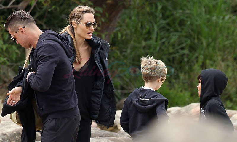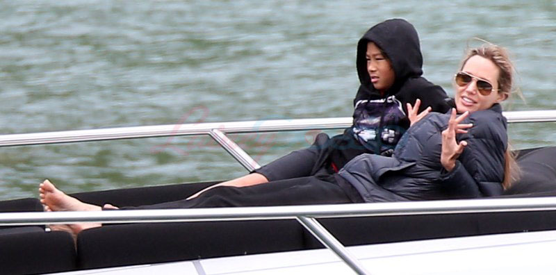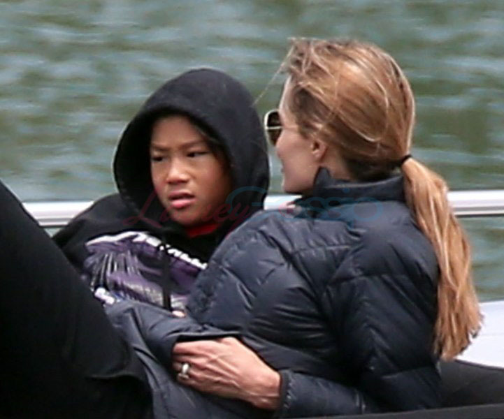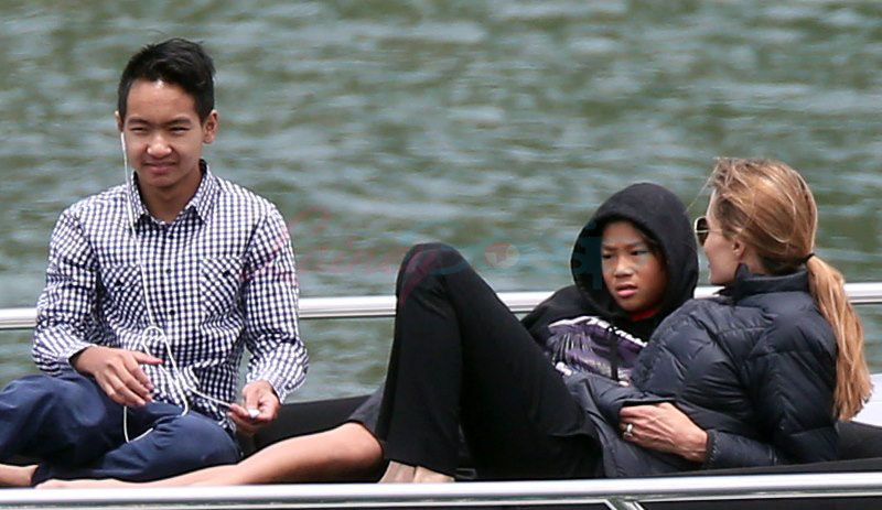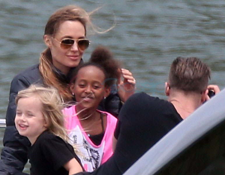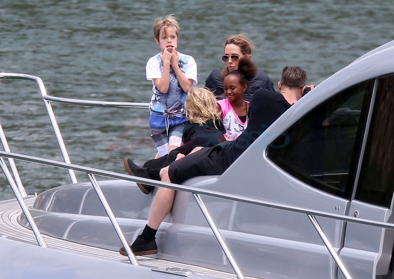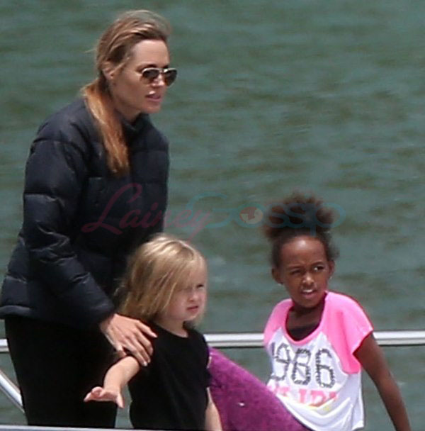 It’s the perfect setting – the sun is out and the children are unruly, especially as dad Brad tries to take pictures. Maddox is a proper young man, with a young man’s indulgent affectionate expression as he tries to cope with all his siblings, including The Chosen One Shiloh, a born entertainer, and her doppelganger little brother Knox, who has to be gripped by the wrist, just like his big sister was when she was younger. They are the wild ones to beauty queens, Miss Zahara and Vivienne, with the enigmatic Pax rounding out the group. All six, each with their distinct personalities, being raised in their parents’ spotlight, the most fascinating couple in the world and, therefore, fascinating by extension. Are their lives contained in a bubble? Given their peripatetic lifestyle, it’s not like they’re running down the street hanging out with other kids on the block. This family comes with built-in playmates. More on that note in the next post. (There are so many new Brange photos from this weekend, we’re going to split them up.)