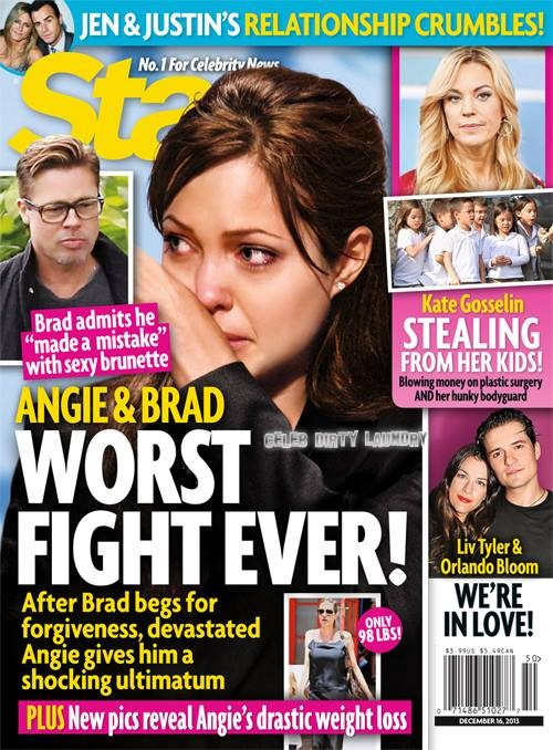 Angelina Jolie is crying on the cover of the current STAR Magazine. Something about Brad Pitt cheating on her and their relationship is almost over. STAR would have gone to print around December 2/3. Needless to say, they had no idea that just as they were closing the issue, Brange was in Australia on December 3, together, with their children, enjoying a family boat ride and beaming at each other with affection. Does this…