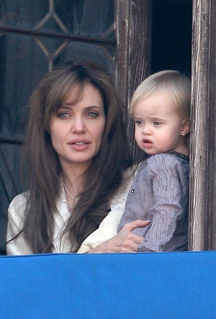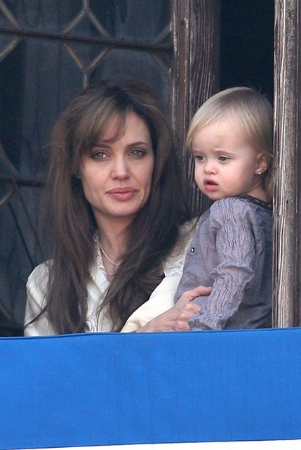 You know, I never thought Angelina Jolie was be a dressing gown kind of woman. My Angelina Jolie sleeps naked. Having said that, in my Jolie fantasies, she never has to worry about propriety while holding her children out in public on a balcony announcing to the world that relations are solid between her and her in-laws.