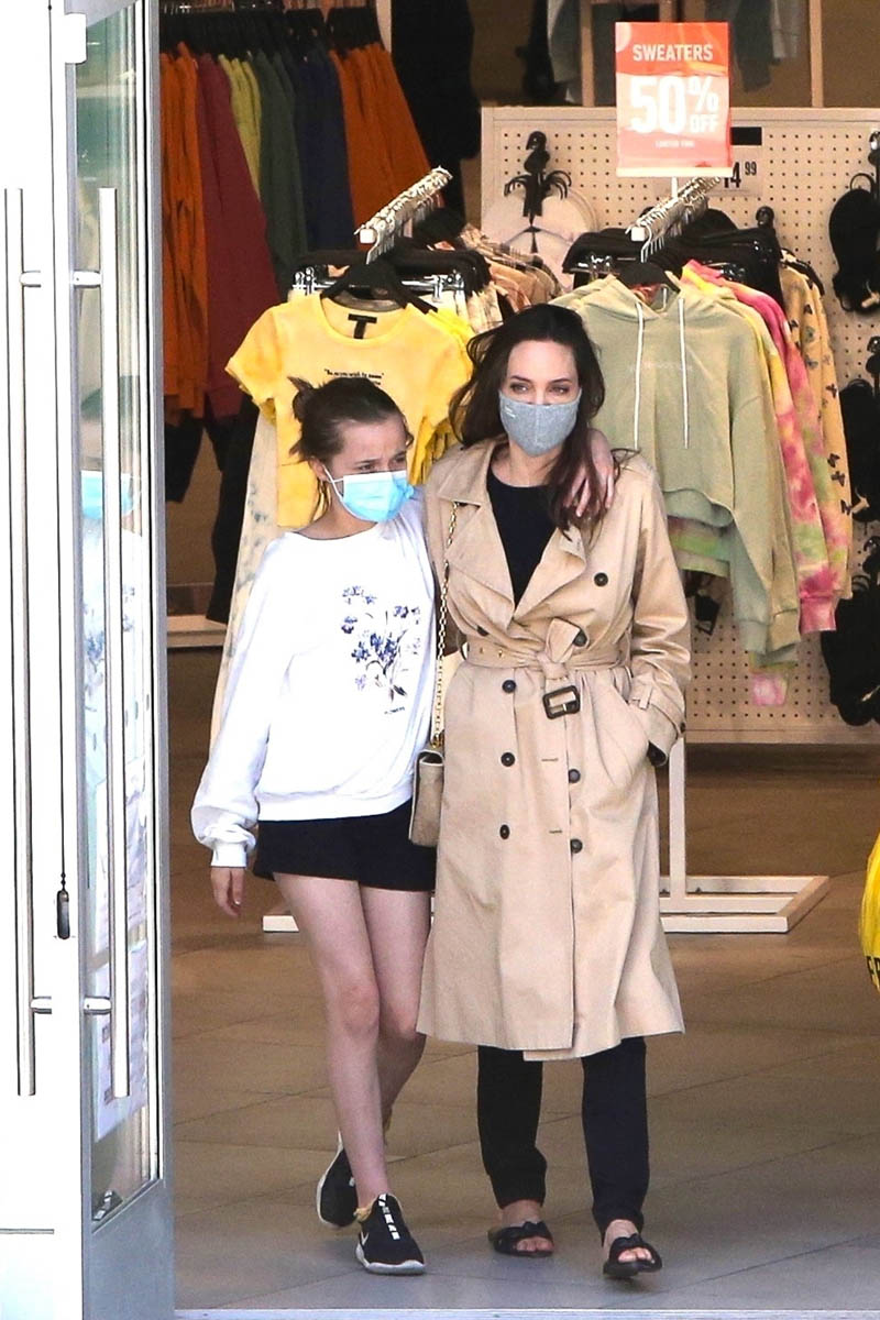 Angelina Jolie was out yesterday with Vivienne. They went to FOREVER 21 which… yeah… of course they did. Vivienne is 12 years old. And even though she’s the child of celebrities, it doesn’t mean she doesn’t share common ground with other kids her age. FOREVER 21 went through a rough time a couple of years ago. This week in particular though they’ve been making headlines for their Juicy Couture collaboration. There’s been a lot of talk about it among younger consumers, particularly on social media. For Angelina then, with several teens at home, like other parents of teens, this might be part of her daily content. That was certainly the case yesterday.