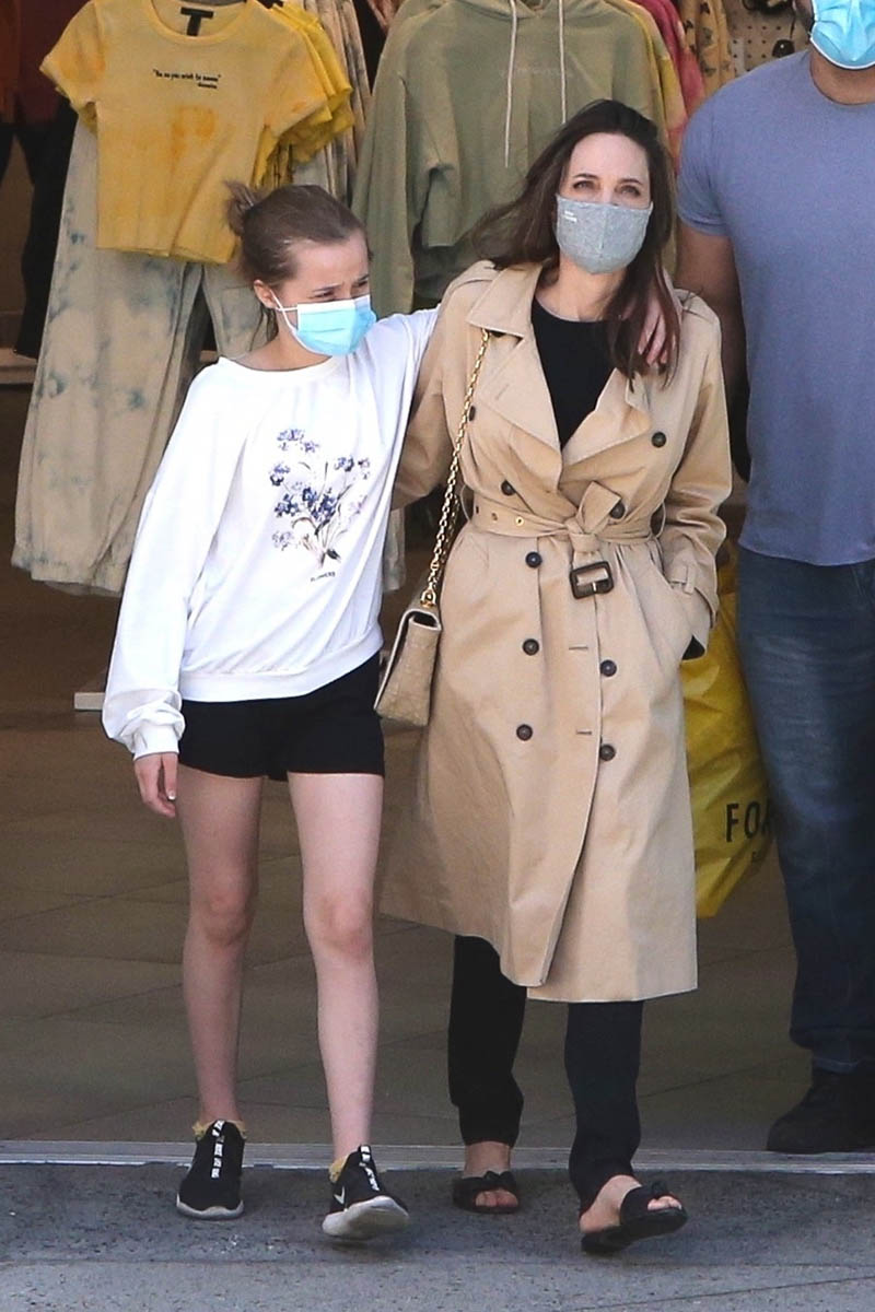 As you can see, Vivienne and Angelina look close. Vivienne has her arm around her mom as they’re walking out of the store. She still wants to put her arm around her mom then. It may not be the case next week; we’ve all been there, teens change, week to week. Right now, Vivienne is still that girl who wants to wrap her arm around her mom’s shoulder. I remember wanting to be tactile with my parents up to a certain point. And then there was a shift – don’t baby me anymore, I don’t need to be attached to you, I’m a grownup! Obviously every kid is different, and Vivienne may not behave in exactly the same way, but eventually what’s supposed to happen is that kids do become more independent, they begin building lives separate from their parents, as they try out versions of themselves before figuring out who they are and what they want to be. And this will be Angelina’s sixth time going through it!