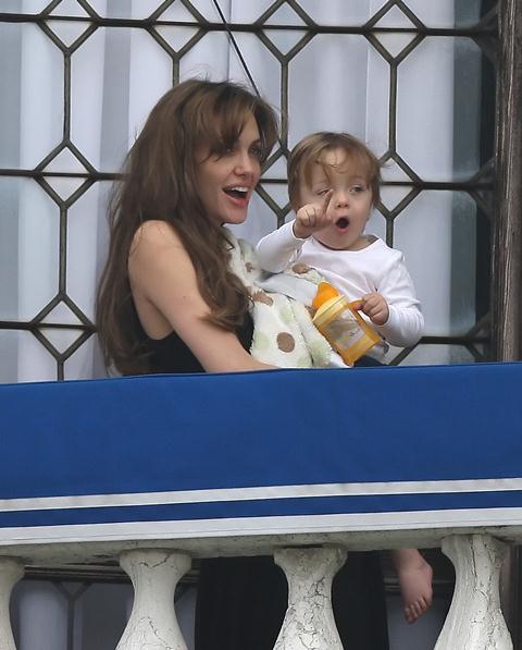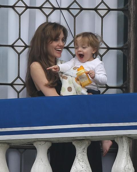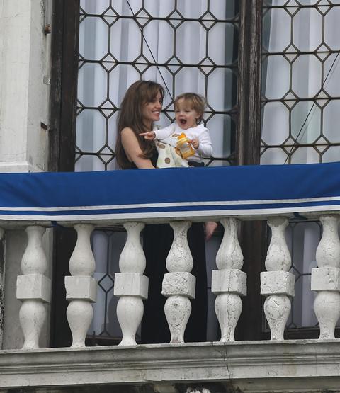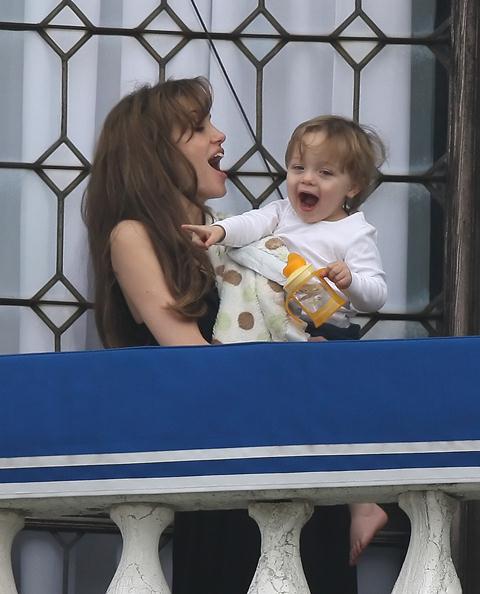 Well the photo agency says it’s Vivienne so let’s go with Vivs. Angelina Jolie and Vivs marvelling at the sky on the balcony in Venice. Vivs seems pretty jacked about whatever it is that’s getting her jacked. Pretty cute, non? Sippy cups are so convenient. I spill all the time. Adults should be allowed to use sippy cups without fear of ridicule.