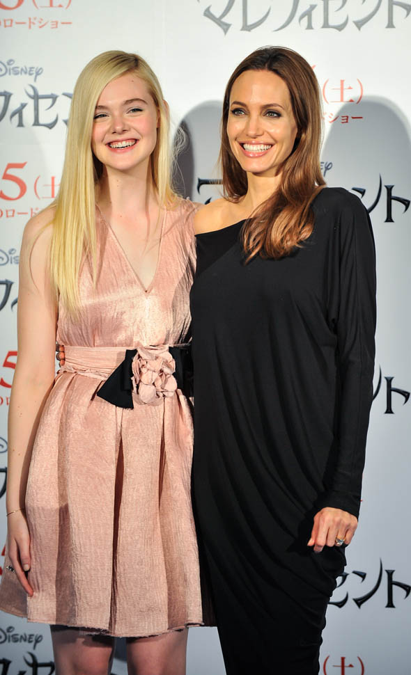 As mentioned yesterday, Maleficent is now Angelina Jolie’s highest grossing film…and there are still territories yet to open. Like Japan. Where she’s been with Elle Fanning for a few days – yesterday at the premiere and today for a press conference. As usual, Elle’s doing the princess thing in pink and the Jolie’s in black. But a really, really great black dress. At least to me. Because I’m so over body-con. The hint of a bare shoulder with everything else covered up underneath is sexy too, just as sexy as something super tight, if not more. I also love how the material falls in constructed drapes. Am also obsessed with the tapering of the sleeve after the elbow. So it’s not shapeless…it’s just a different shape.