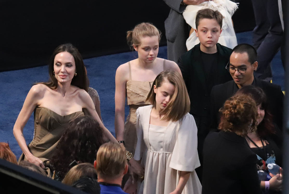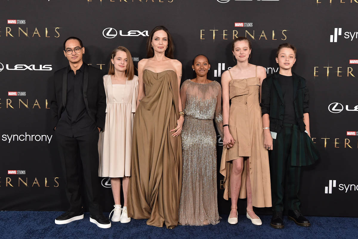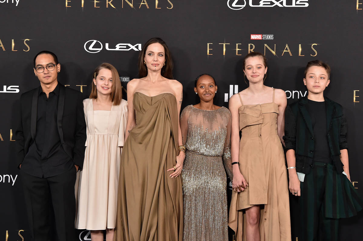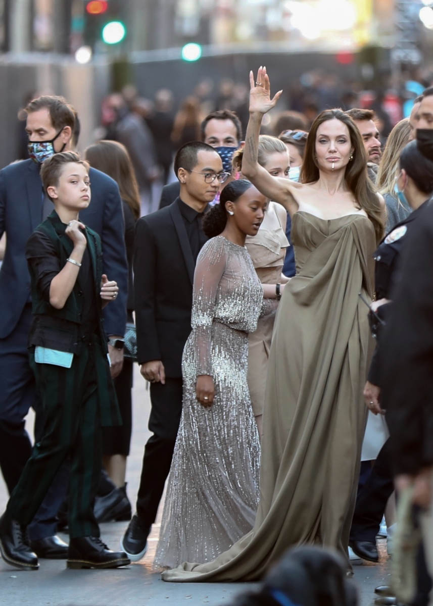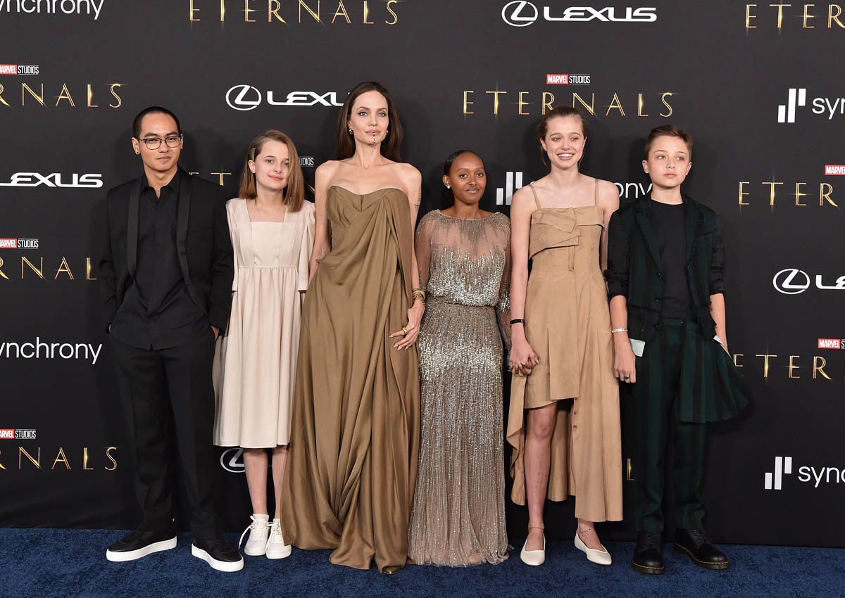 Angelina Jolie plays Thena in Eternals, as part of her ongoing relationship with Disney, and she showed up at the premiere last night leading her own ensemble as five of her six children joined her at the event – which of course was one of the bigger if not the biggest moments during arrivals, even though her role is said to be smaller than many of the other cast members.