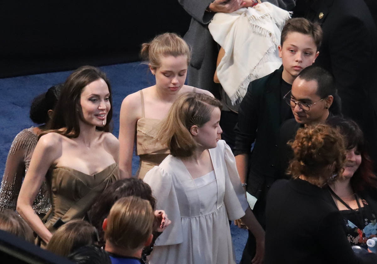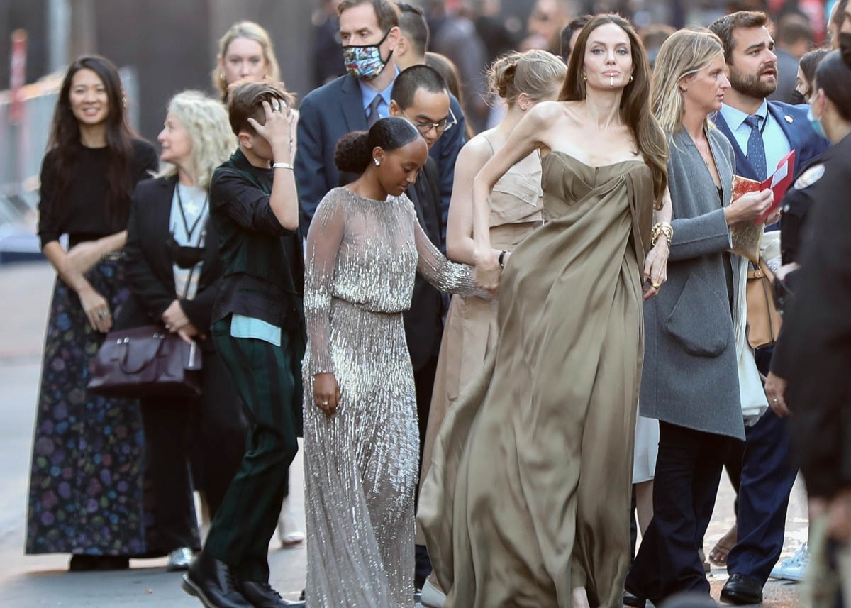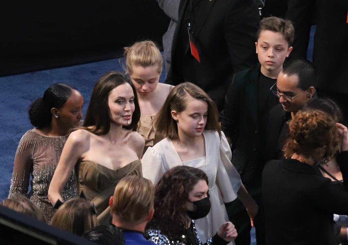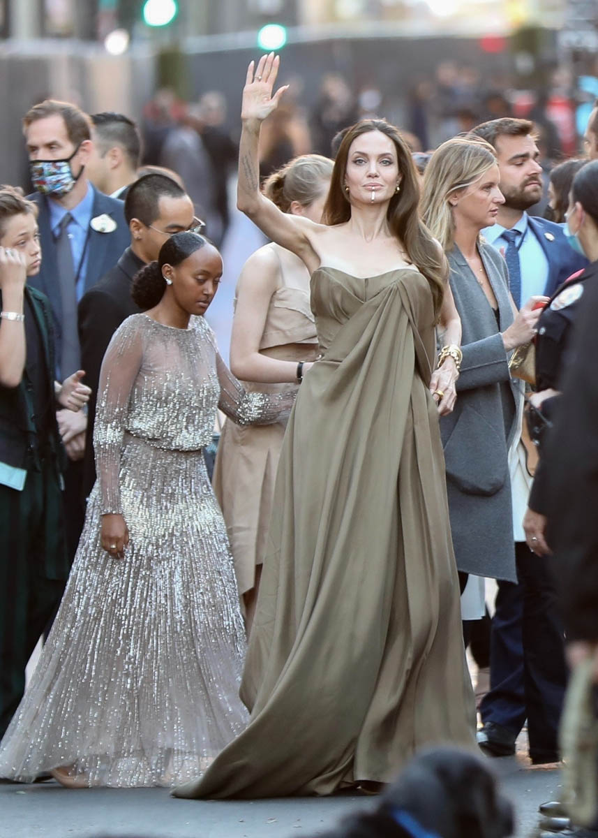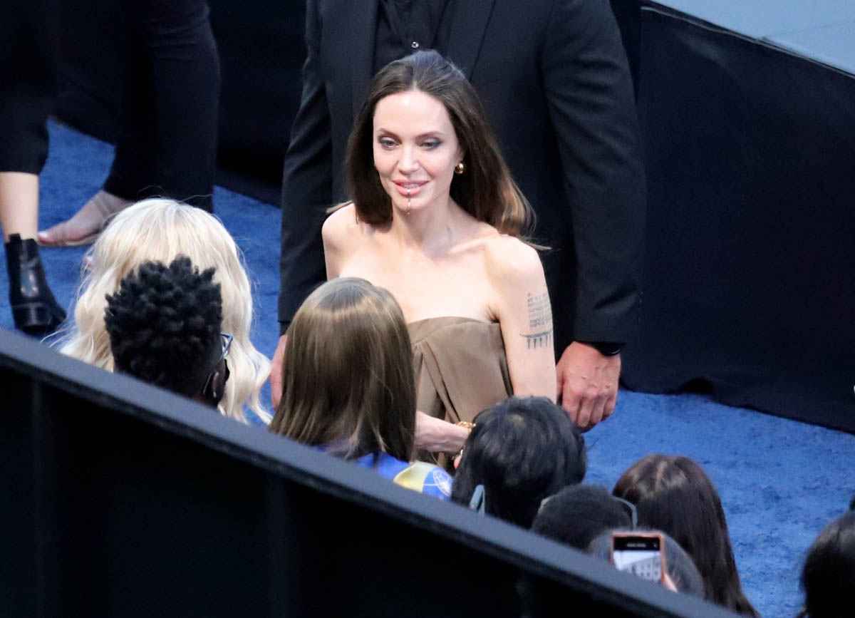 As you can see, she’s in a dress, which looks to be a Gabrielle Hearst dress that Angelina has worn before but recut into a fresh new style. This is not Shiloh’s first red carpet, of course, but in the past she’s preferred suits and shorts. Right now she’s feeling a dress. Next time she might be in a tuxedo, or a track suit. I’m sure her mother’s closet will have those options too.