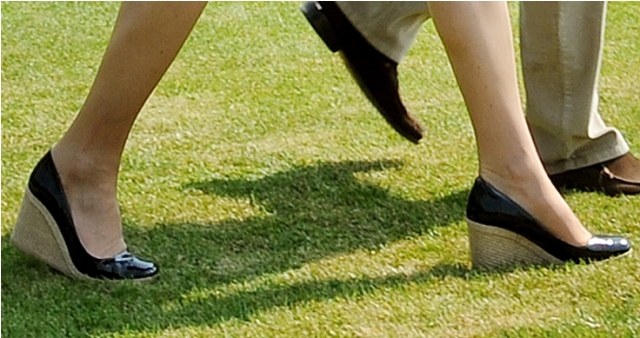 Anyway, as you can see, Angelina’s wedges, they’re very similar to Princess Catherine’s LK Bennett wedges. These days, as Kate continues to maintain a very, very, very slim frame, they could almost pass for each other in body shape. Sure, the Jolie has the memory of three babies around her belly, and may be more veiny, but I think they’re nearly the same – both very, very controlled about their food, obviously.