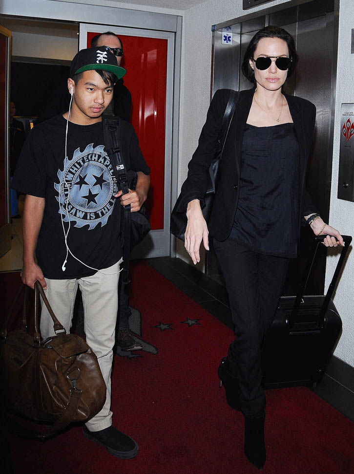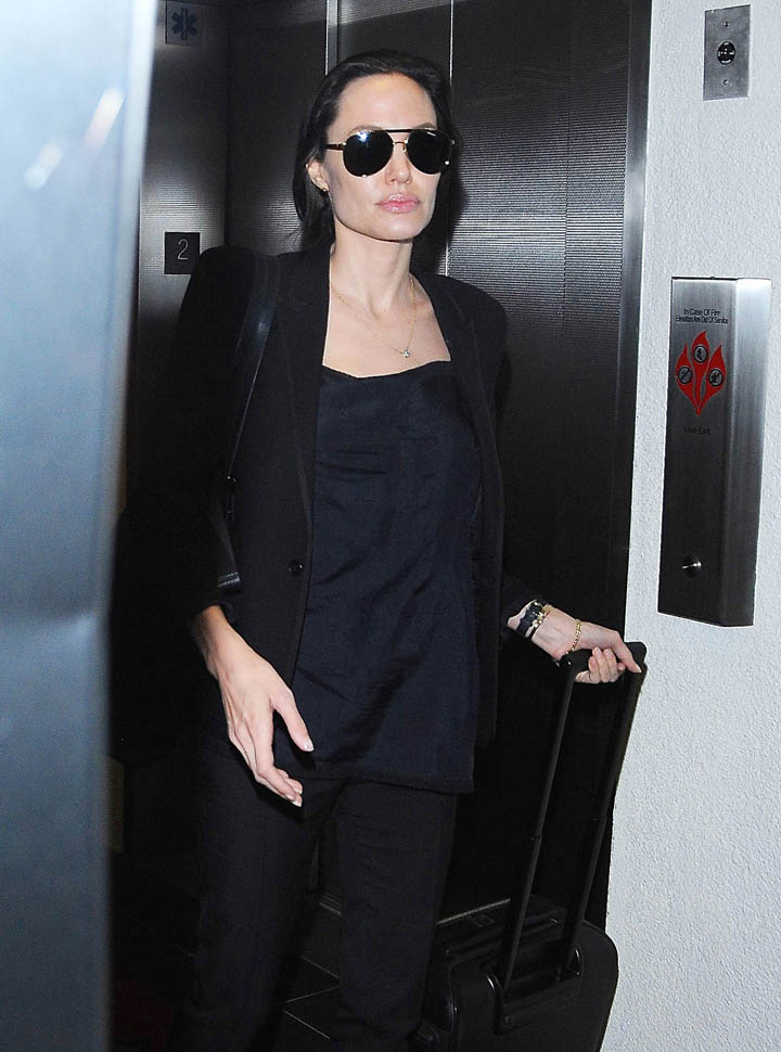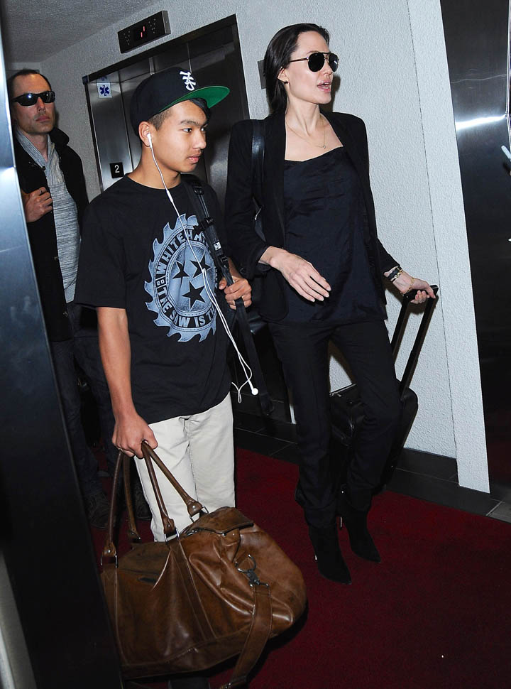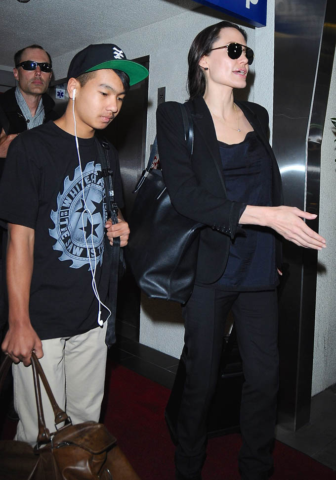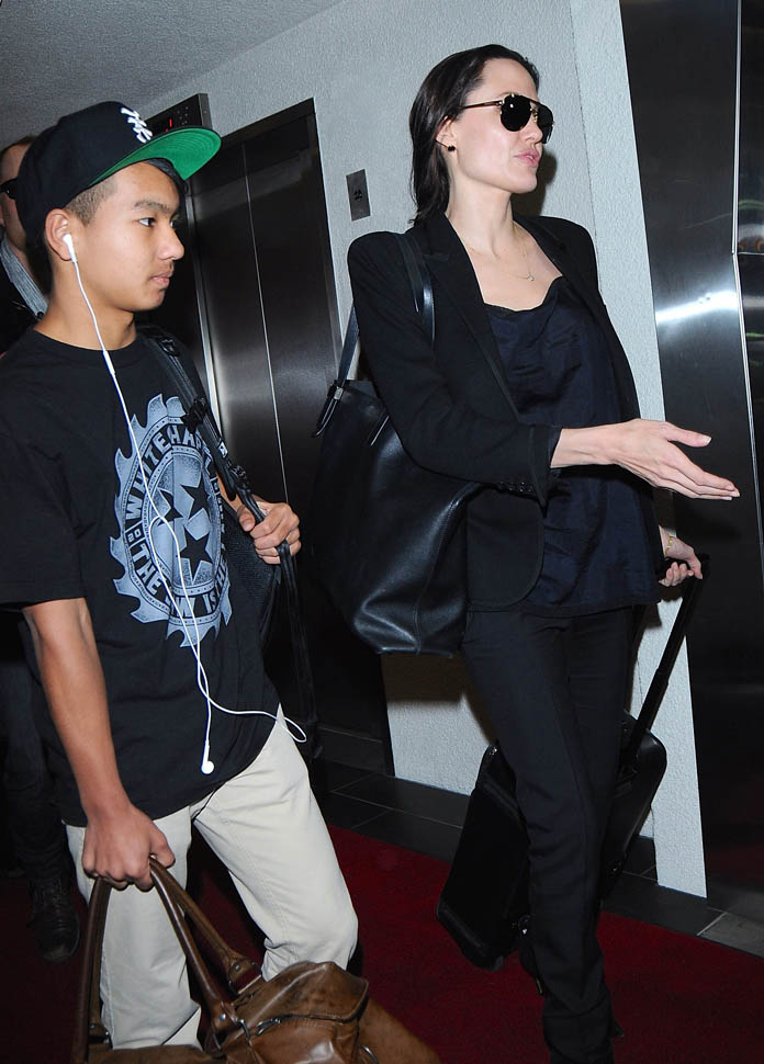 After blasting the UN Security Council for its inaction in Syria, Angelina Jolie returned home to Los Angeles yesterday, accompanied by Maddox and her brother, James Haven. She was informed, she was passionate, she was angry, but will she be effective? The effort is there, totally. But these are people driven by their own special interests – special interests that are even more selfish and self-serving than the special interests she’s normally surrounded by in Hollywood. So even Angelina Jolie doesn’t step up to that podium with confidence. Even Angelina Jolie knows that in that room, the movie stardom doesn’t necessarily mobilise.