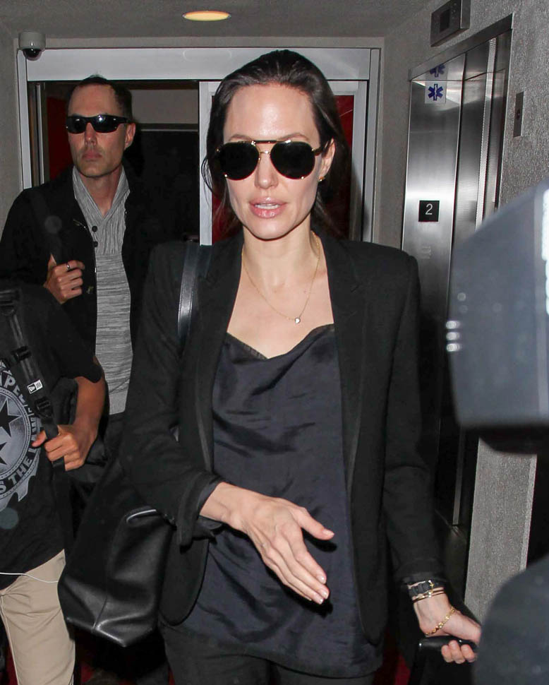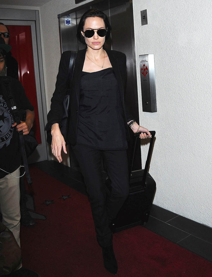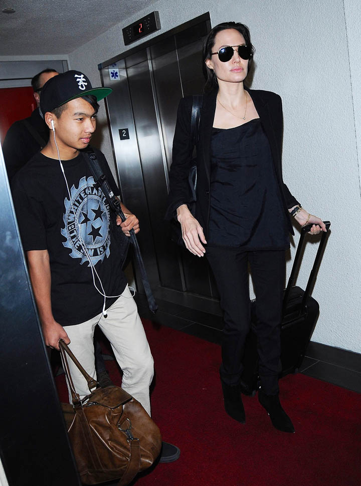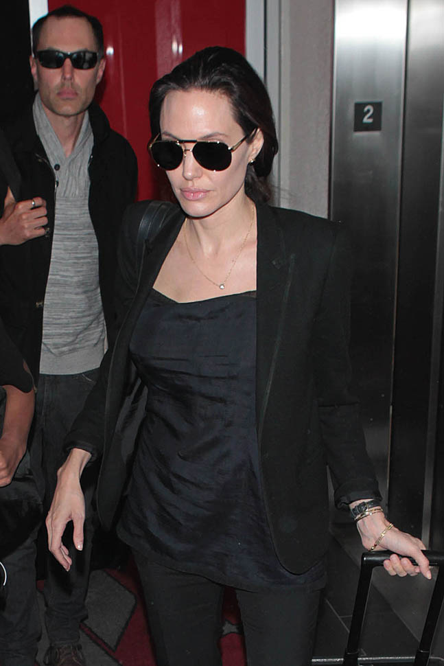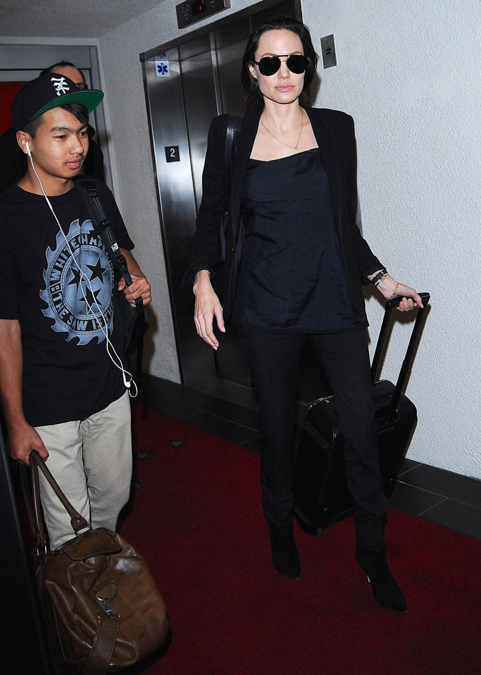After blasting the UN Security Council for its inaction in Syria, Angelina Jolie returned home to Los Angeles yesterday, accompanied by Maddox and her brother, James Haven. She was informed, she was passionate, she was angry, but will she be effective? The effort is there, totally. But these are people driven by their own special interests – special interests that are even more selfish and self-serving than the special interests she’s normally surrounded by in Hollywood. So even Angelina Jolie doesn’t step up to that podium with confidence. Even Angelina Jolie knows that in that room, the movie stardom doesn’t necessarily mobilise.