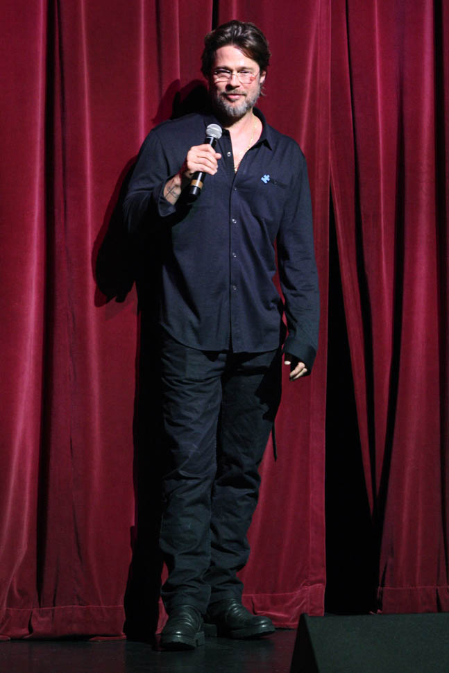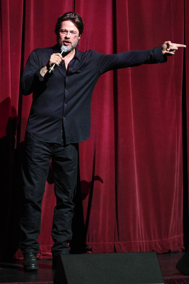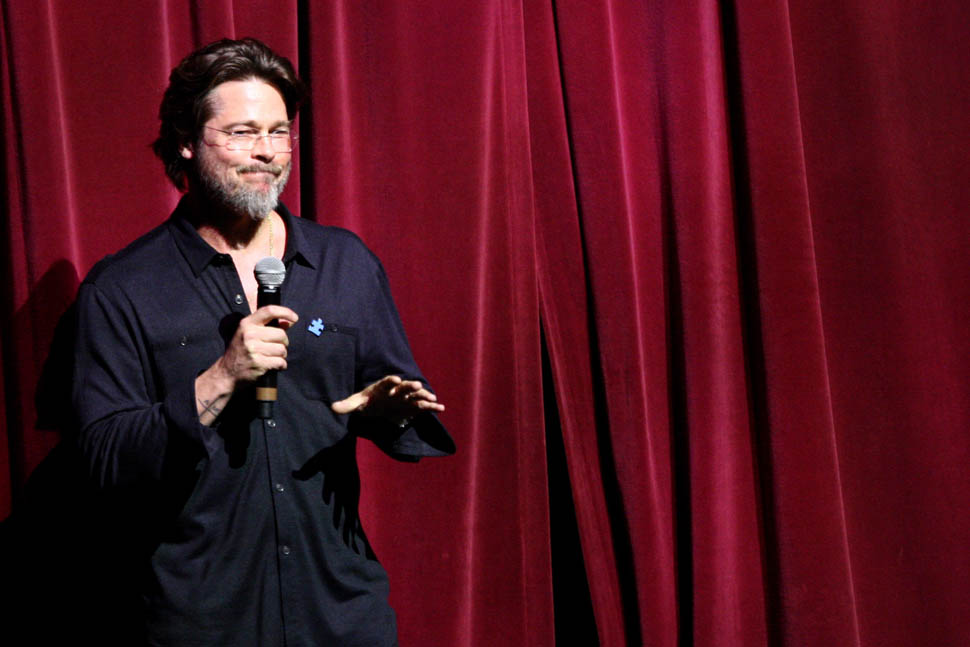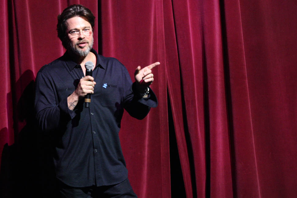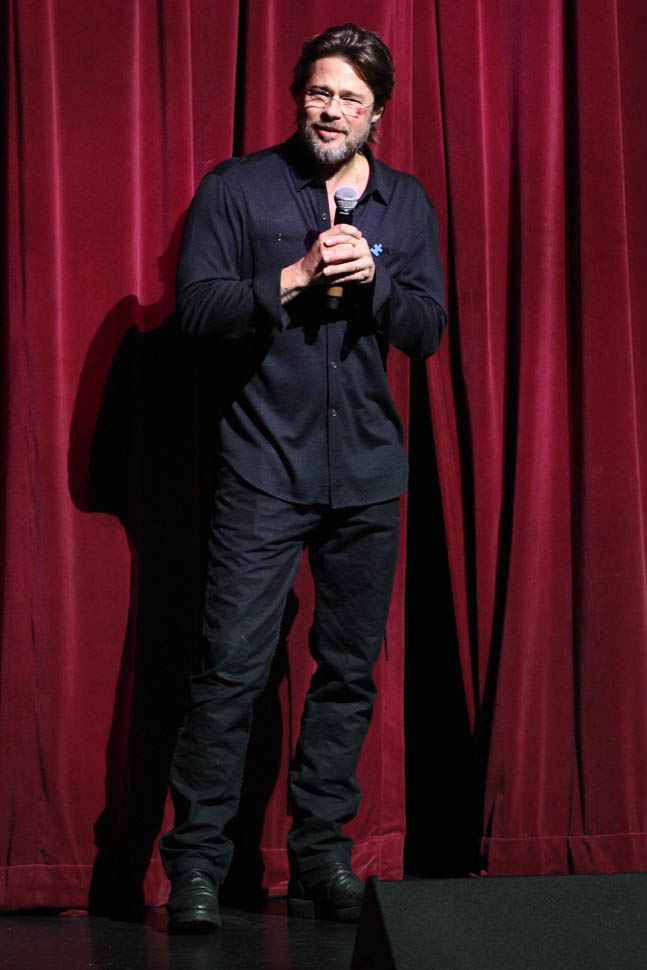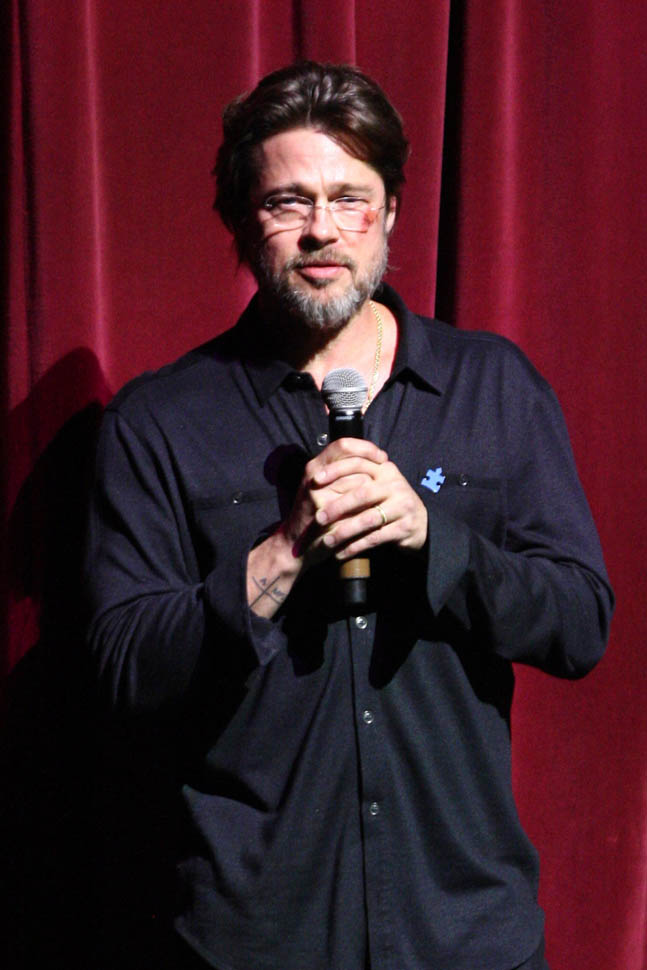 While the Jolie was crusading in New York, Brad Pitt attended the Autism Speaks Blues Concert in LA on Saturday with a busted cheek. He released a statement afterwards explaining how it got there: