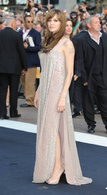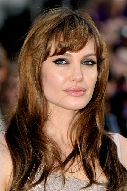 Like you know Alcide’s amazing crazy bitch of an ex girlfriend Debbie in True Blood? And she has that rocker skank from the small nowhere town hairstyle? The Jolie with the fringe isn’t too far off. It’s the rest of her head that saves her.