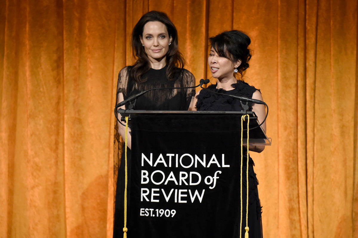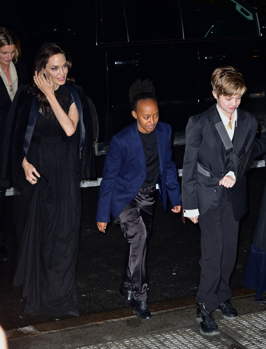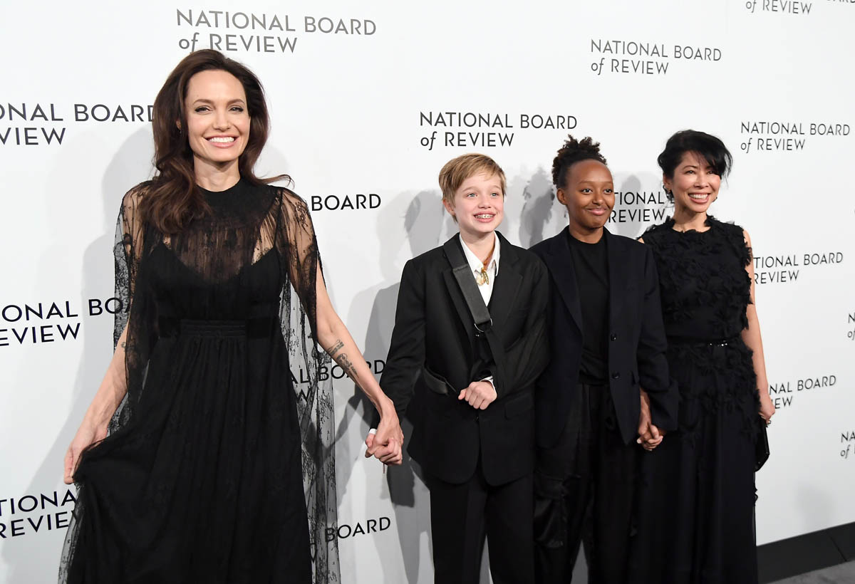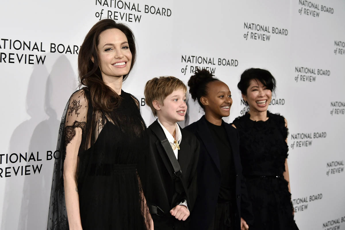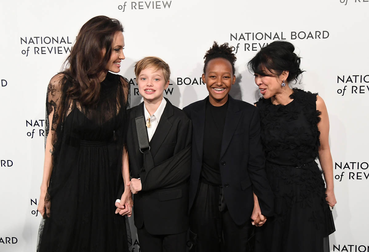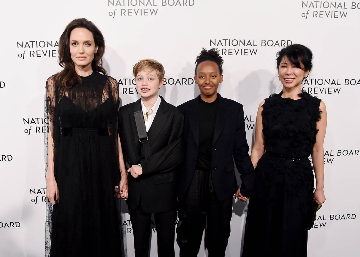 Angelina Jolie was in New York last night to accept the NBR Freedom of Expression Award for First They Killed My Father. She was joined by her collaborator and friend Loung Ung and daughters Zahara and Shiloh. As you can see, Shiloh has her arm in a sling. Apparently she injured it while snowboarding during the holidays. Sources tell PEOPLE that Shiloh is “fine” and she certainly seems fine and in great spirits on a girls’ night out.