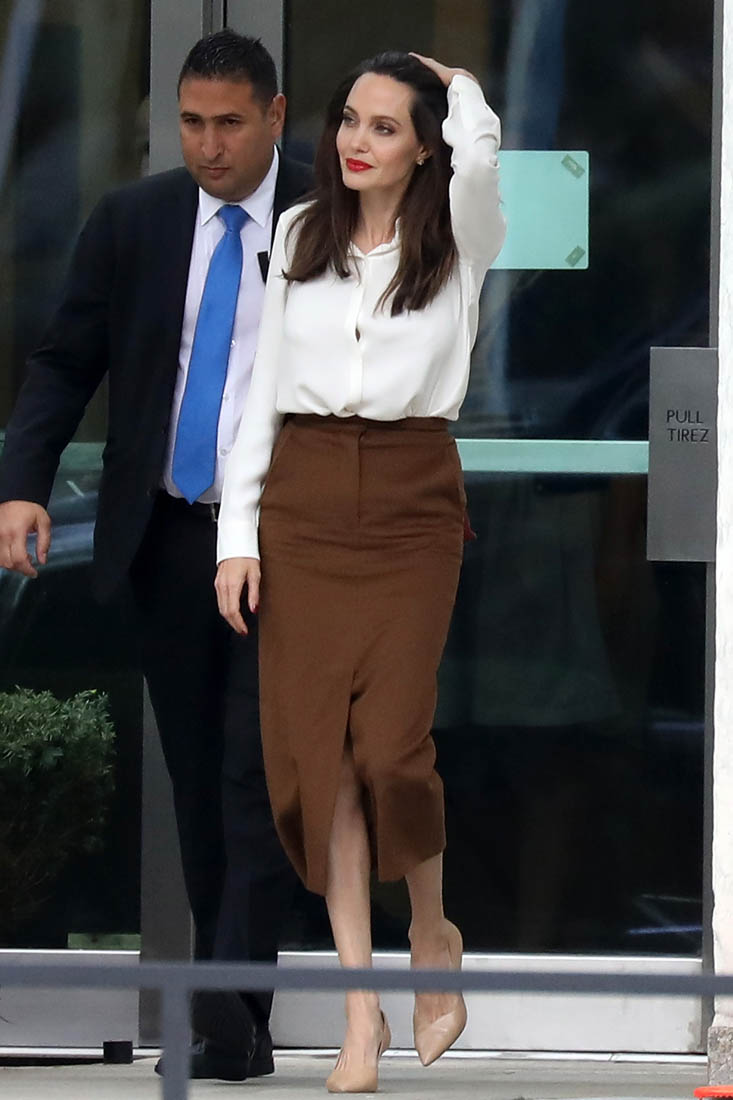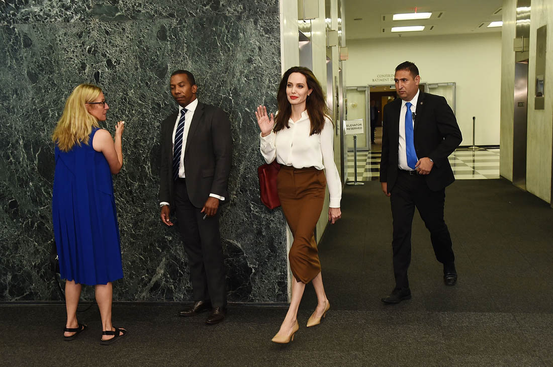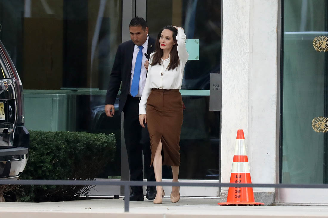 Angelina Jolie met with UN Secretary General Antonio Guterres yesterday at the United Nations headquarters. Details of what was discussed were not released but he was formerly the UN High Commissioner for Refugees and she’s the Special Envoy for the UN Refugee Agency so it’s probably not hard to guess what their conversation was about.