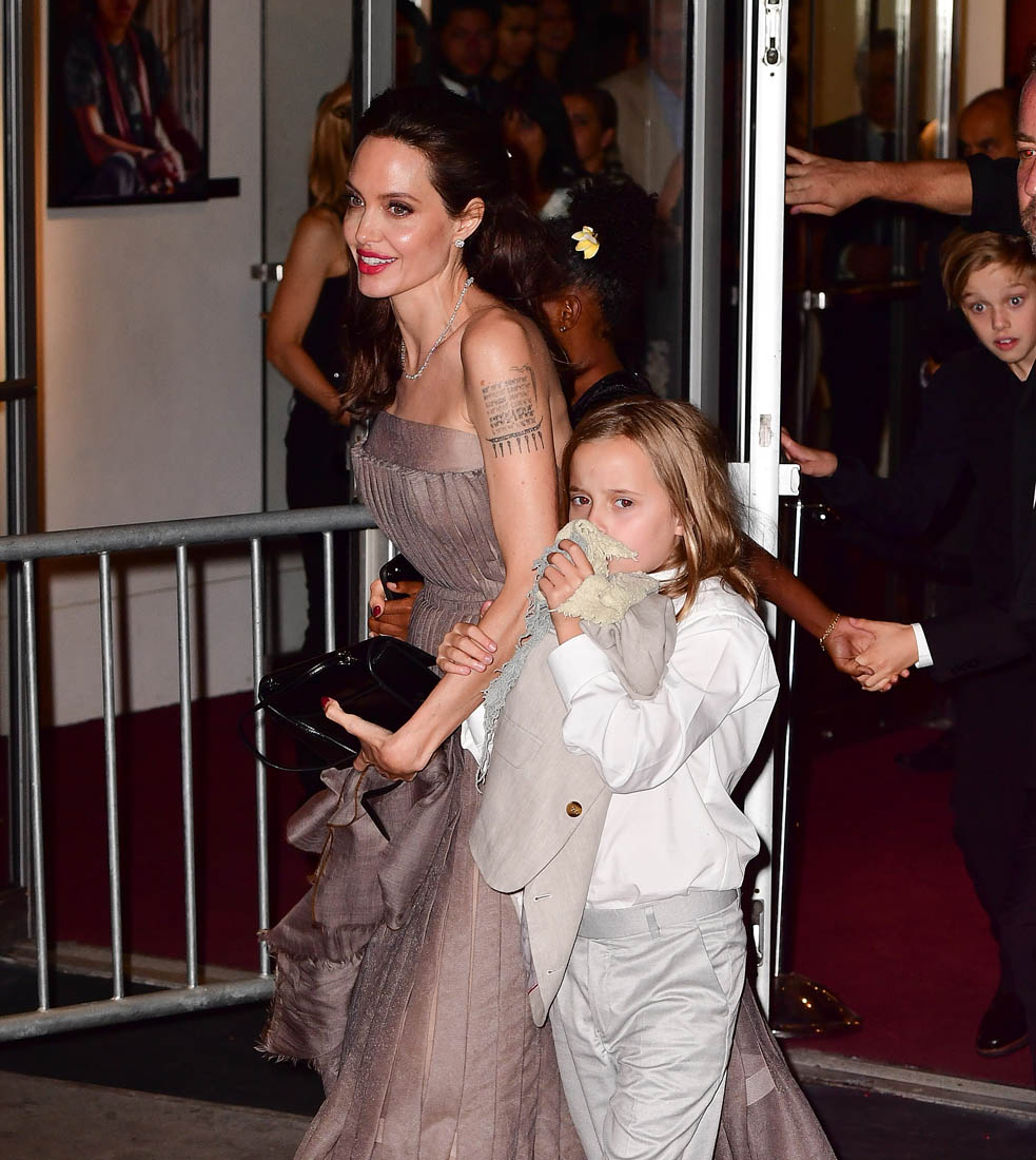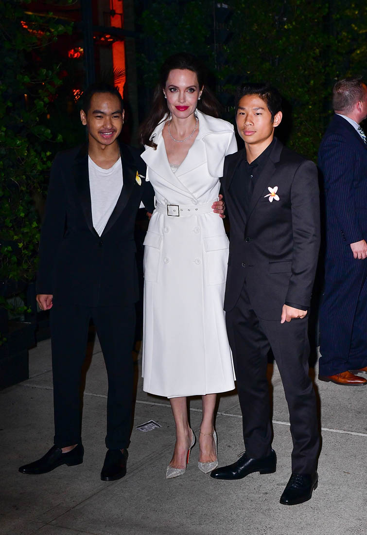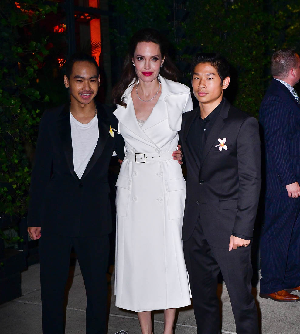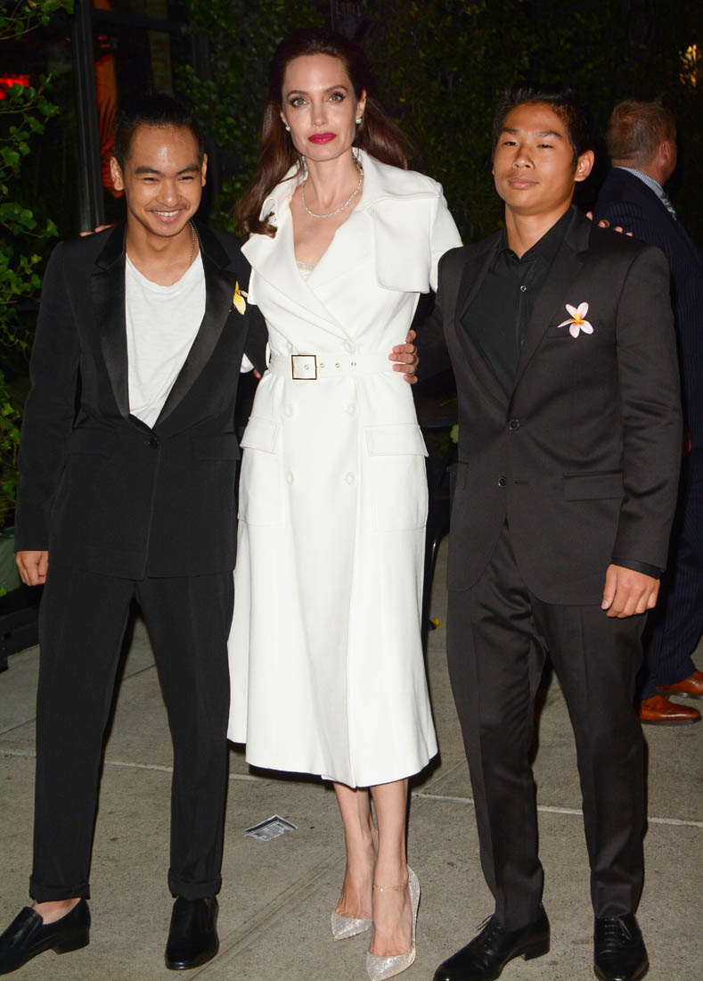 Later on, Angelina and all six of the children attended the New York premiere of First They Killed My Father. And all six kids wore yellow flowers. Miss Zahara had hers in her hair. Angelina held hands with Loung Ung on the red carpet. And she attended the after-party with Maddox and Pax, wearing a white trench coat. And whenever she’s in a trenchcoat it reminds me of the trenchcoat she wore in Mr & Mrs Smith. Which brings us to Brad Pitt and all the rumours that they might be reconciling. From her though, there’s been no indication that there’s to be a reconciliation. The only legitimate reconciliation here is the one with her father, Jon Voight, who was also there last night in support of his daughter and maybe to babysit, though I’m not sure for how much longer we can say that because Vivienne and Knox are already 9 years old. 9! They’re all getting more and more independent. This is the goal, non? For kids to go off and have their own lives? Maddox probably has a pretty full life that’s all his own. What will that look like for Angelina Jolie, who just told the NY Times that, “They really help me so much. We’re really such a unit. They’re the best friends I’ve ever had. Nobody in my life has ever stood by me more”.