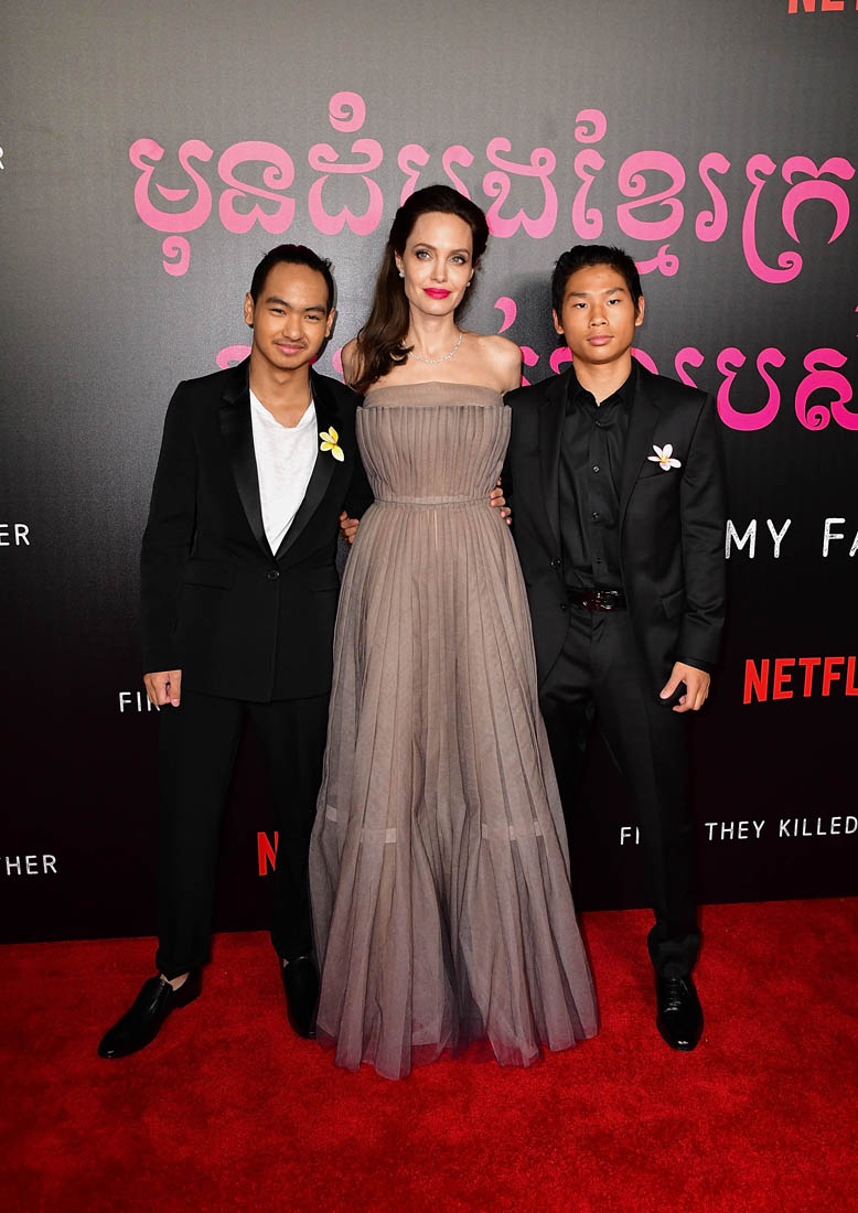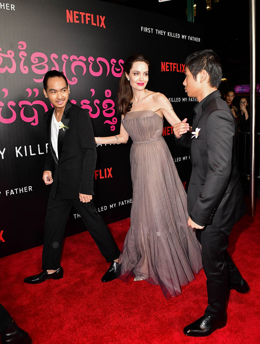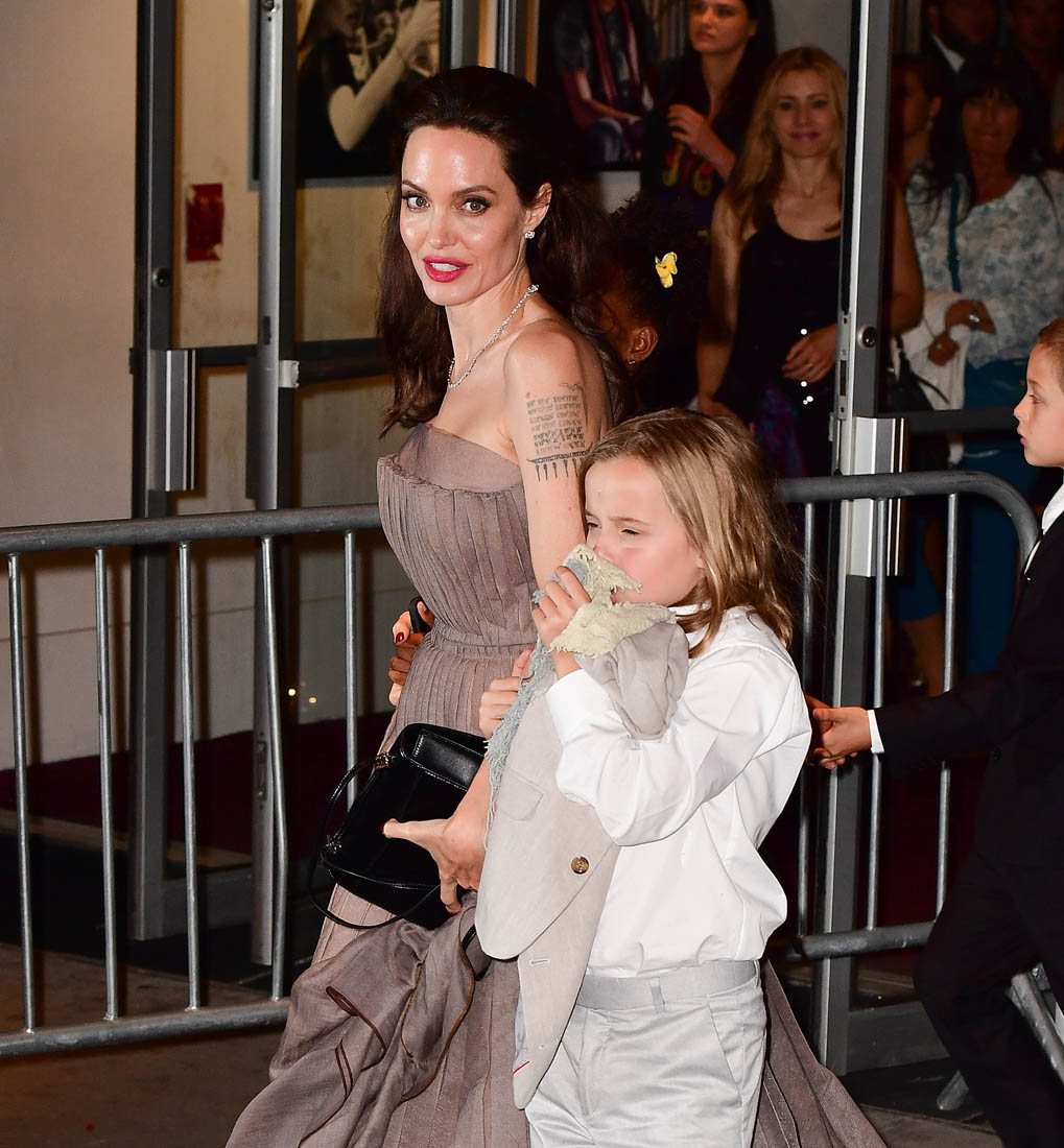 Later on, Angelina and all six of the children attended the New York premiere of First They Killed My Father. And all six kids wore yellow flowers. Miss Zahara had hers in her hair. Angelina held hands with Loung Ung on the red carpet. And she attended the after-party with Maddox and Pax, wearing a white trench coat. And whenever she’s in a trenchcoat it reminds me of the trenchcoat she wore in Mr & Mrs Smith. Which brings us to Brad Pitt and all the rumours that they might be reconciling. From her though, there’s been no indication that there’s to be a reconciliation. The only legitimate reconciliation here is the one with her father, Jon Voight, who was also there last night in support of his daughter and maybe to babysit, though I’m not sure for how much longer we can say that because Vivienne and Knox are already 9 years old. 9! They’re all getting more and more independent. This is the goal, non? For kids to go off and have their own lives? Maddox probably has a pretty full life that’s all his own. What will that look like for Angelina Jolie, who just told the NY Times that, “They really help me so much. We’re really such a unit. They’re the best friends I’ve ever had. Nobody in my life has ever stood by me more”.