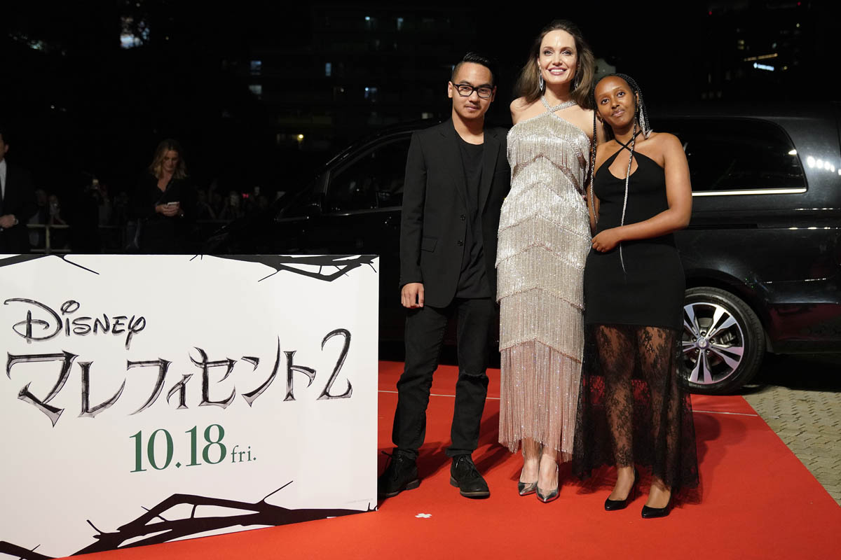 Angelina Jolie has reunited with her eldest child, Maddox, in Tokyo at the premiere of Maleficent: Mistress of Evil. You’ll recall, she dropped him off in South Korea a few week ago at university. The other day, at the Hollywood premiere, she told reporters that he’d be flying the short distance to meet her in Japan. And here we are, Maddox escorting his ma down the red carpet – and Zahara made the trip too.