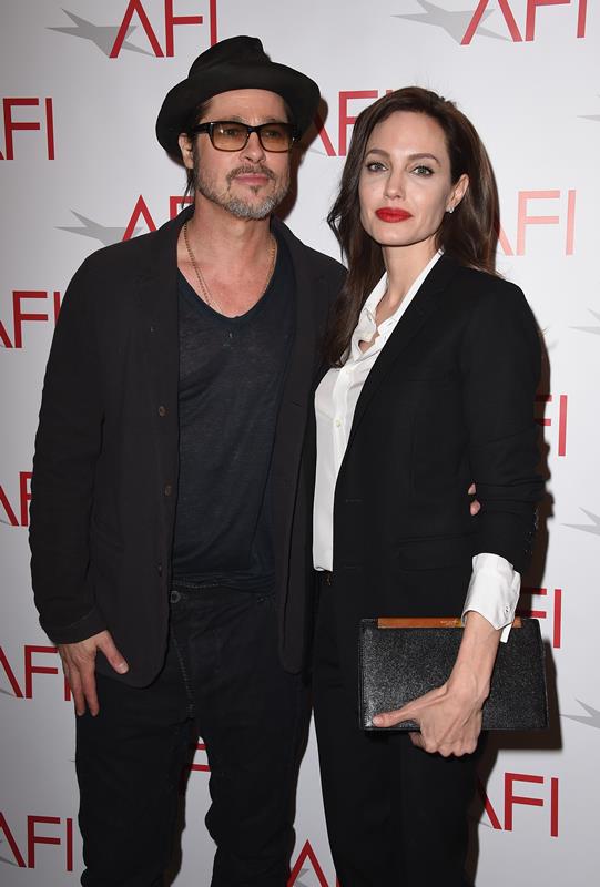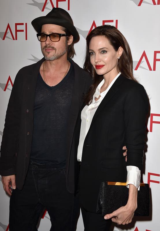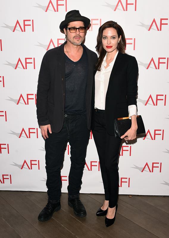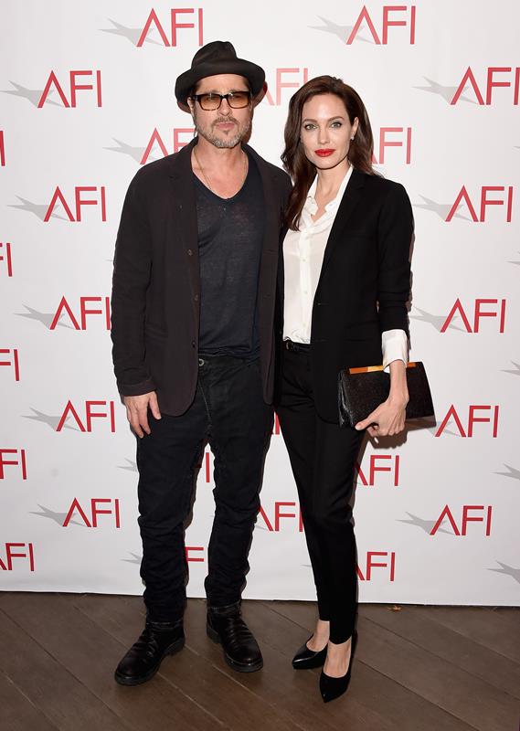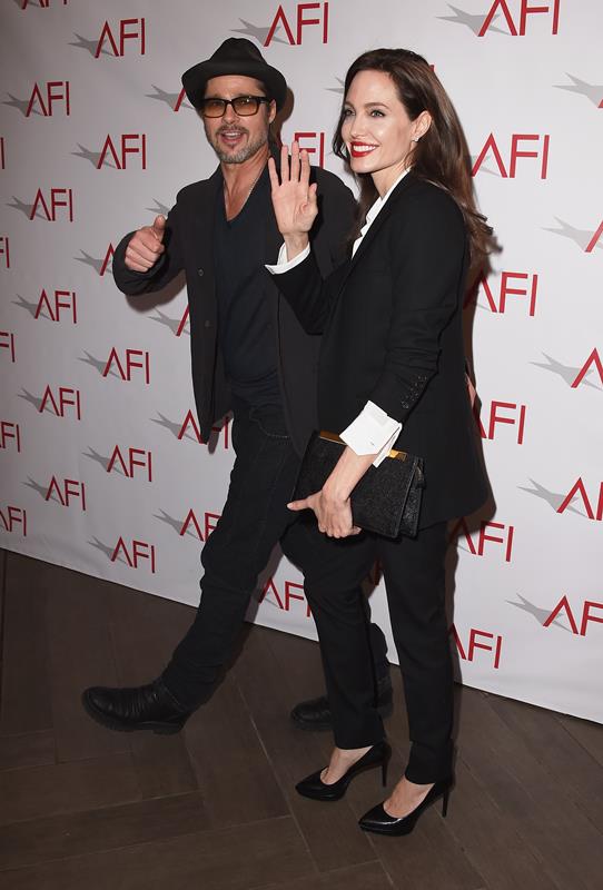 Here they are, Angelina Jolie, fresh from meeting the Pope, and Brad Pitt today in LA at the AFI Awards. Unbroken made the AFI Top 10 List. (It’s actually 11 this year because there was a tie.) This might be the only time we see Brange all weekend since Unbroken was shut out of the Globes. I was talking to an etalk producer just now who was hoping they’d still show up anyway…