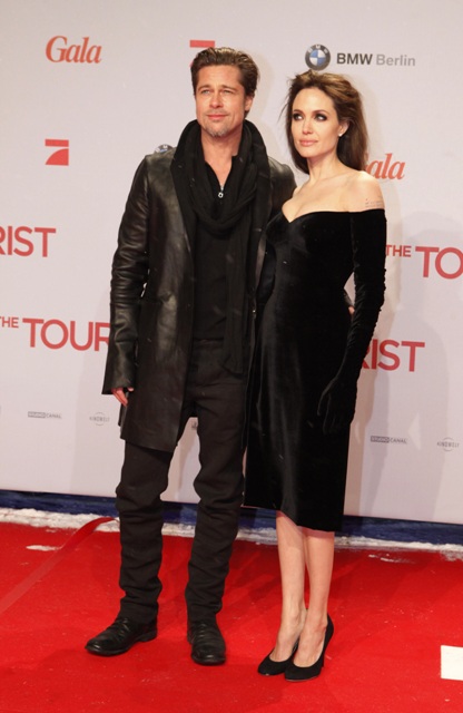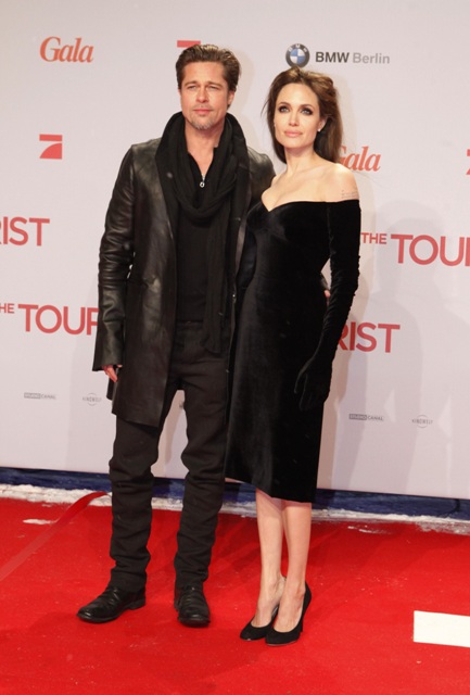 Shame. Because Brad has such great taste in clothes. And looks so good lately. He’ll no doubt look better than her at the Globes in January. Remember? She was nominated for The Tourist?