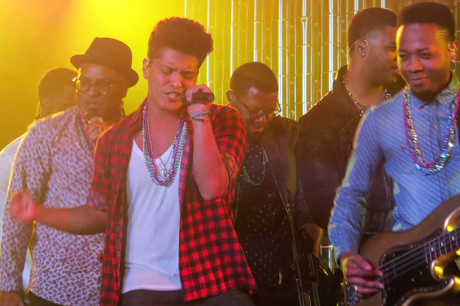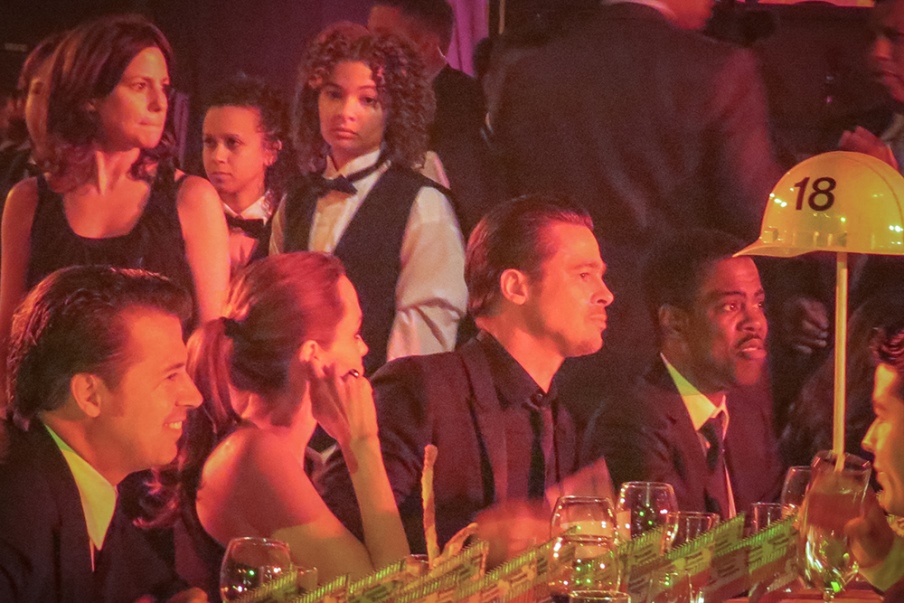 Brad Pitt and Angelina Jolie were in New Orleans this weekend for the Make It Right gala. I’ve attached shots of the Jolie arriving at the venue. Those might be the highest heels I’ve ever seen her wear. I’ve also attached a shot of her seated next to Brad and Chris Rock inside the event where Bruno Mars was one of the performers.