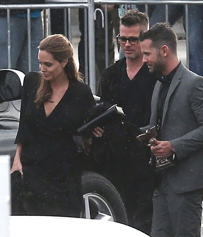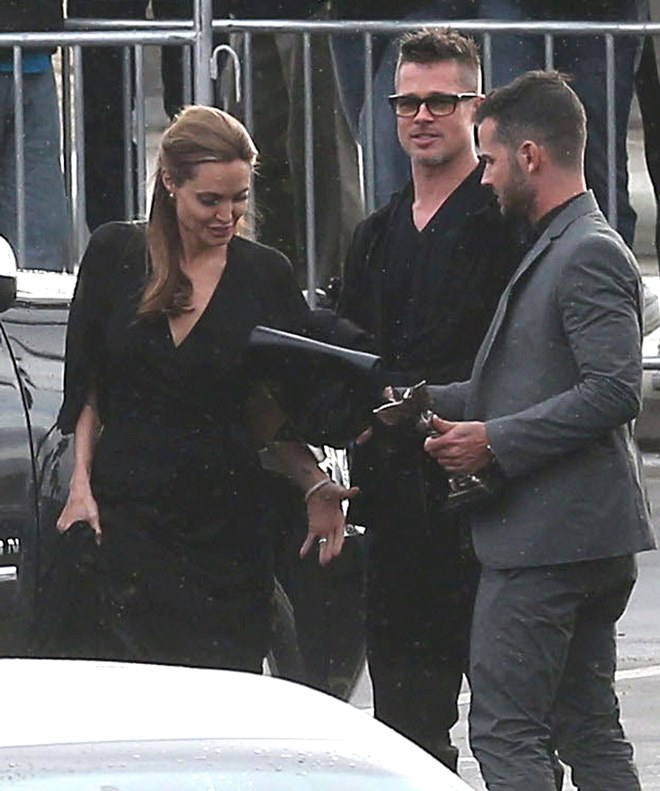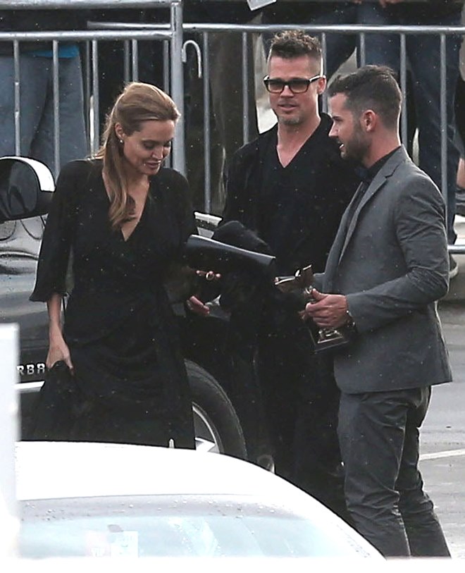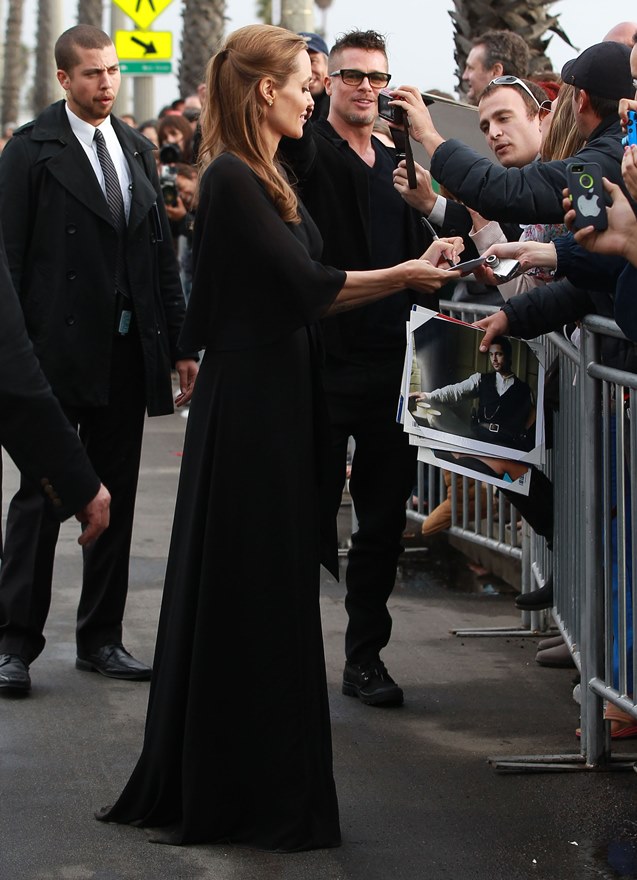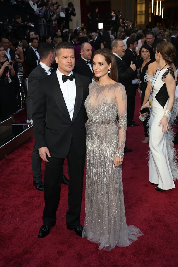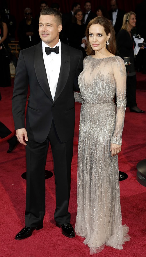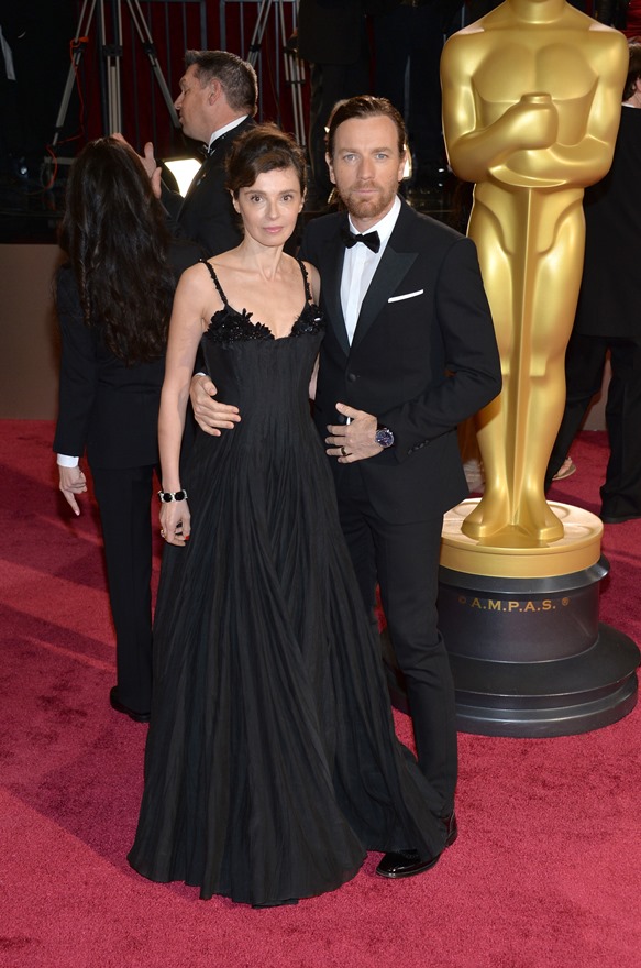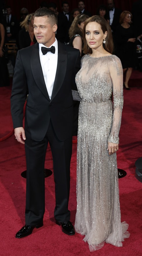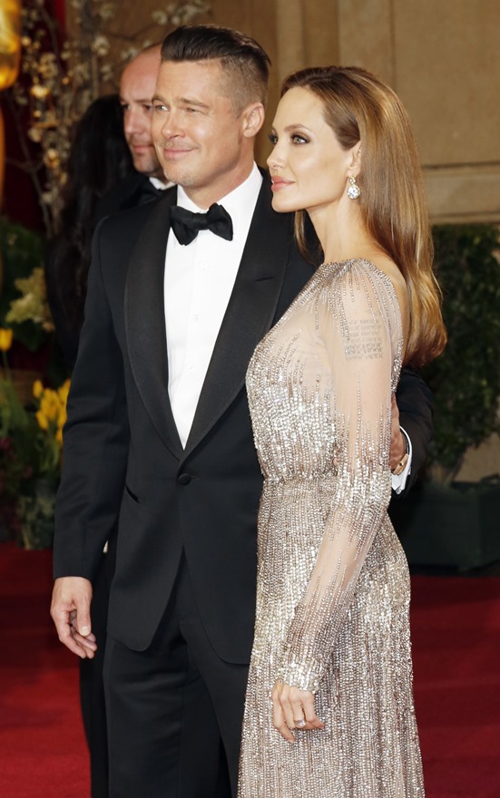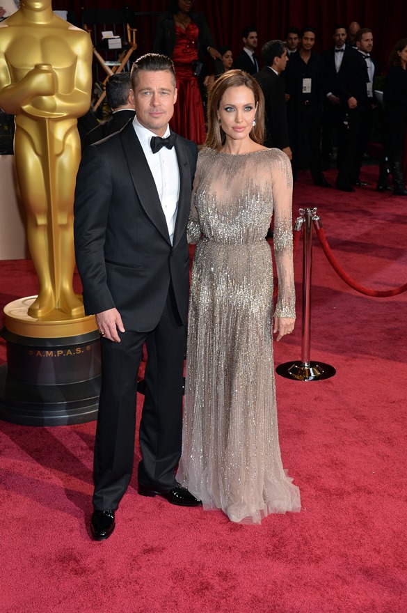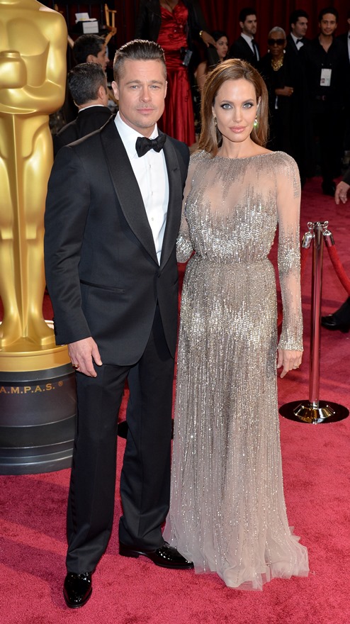 Last night there was a log jam at the final photo wall. Brange looked like they were going to bypass but their handler was trying to talk them out of it. While they were negotiating what to do, Angelina saw Ewan McGregor and his wife, Eve, waiting on line to have their pictures taken. There was a warm greeting and hugs. You’ll recall – the Jolie was very supportive of The Impossible last year. After the McGregors moved forward for photos, Brad spotted Christian Bale and his wife Sibi, also waiting in line at the photo wall. They hugged too. And Angelina hugged Sibi. And then she and Sibi said something to each other and she hugged Sibi again and her face was all happy and now I want to know if they hang. Like who are the famous people Brange hang out with that we don’t know about? Also was the Jolie congratulating them on some good news?
