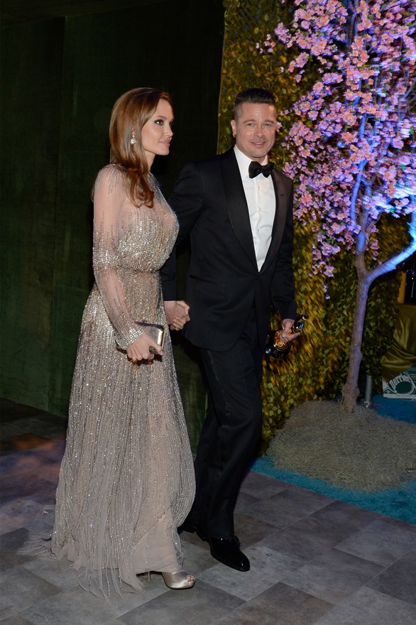 No sign of Brange at Vanity Fair. I guess they had to get Maddox home. And celebrate privately. We talked about this though, Duana and I this morning. Or last night. It’s all blurred together, we can’t remember. Clooney skipped Vanity Fair last year too. It’s almost like for the ones who are at their level, waaaaaay above the rest, Vanity Fair is optional while everyone else almost has to make an appearance.