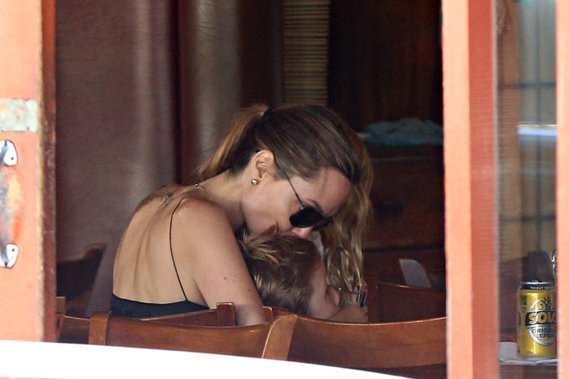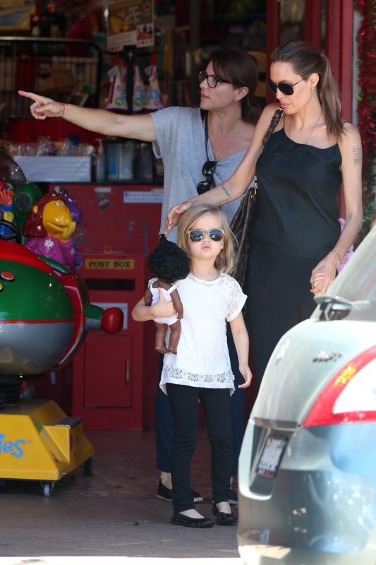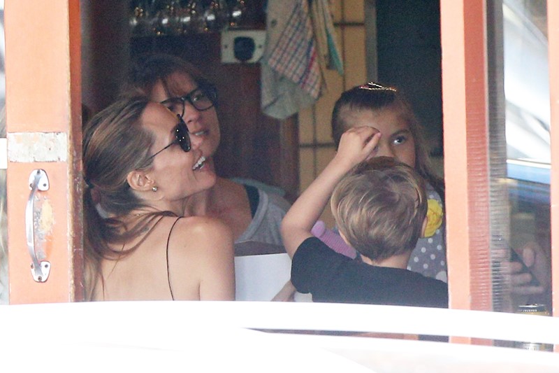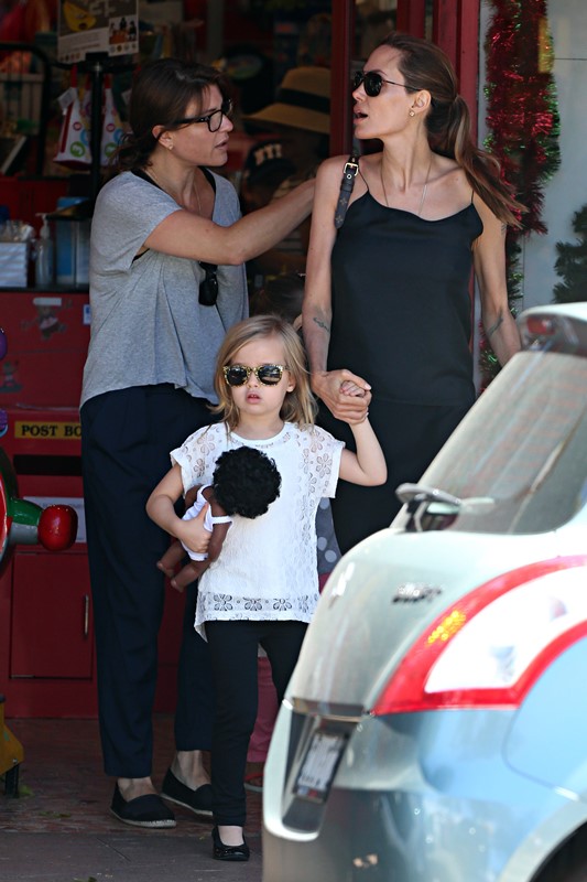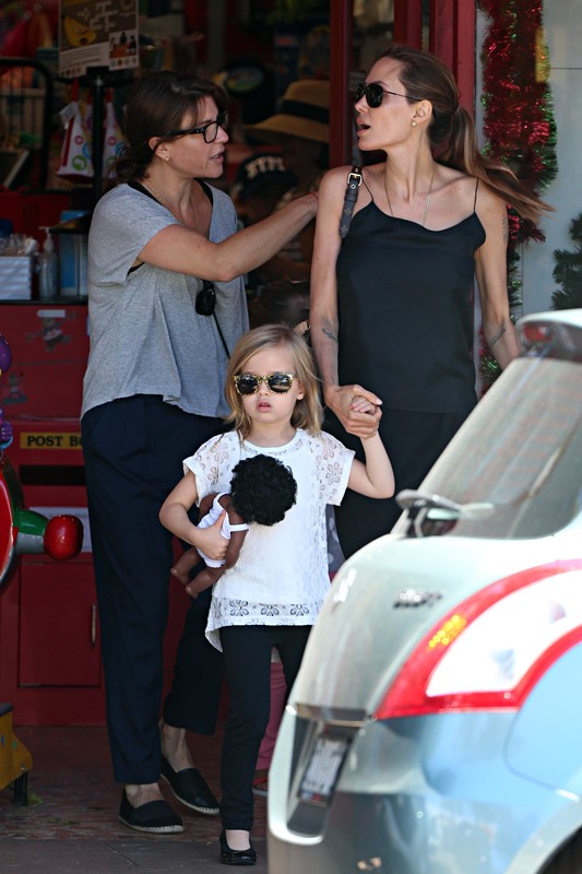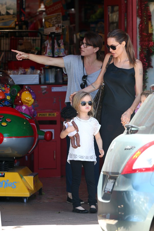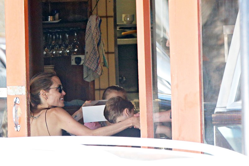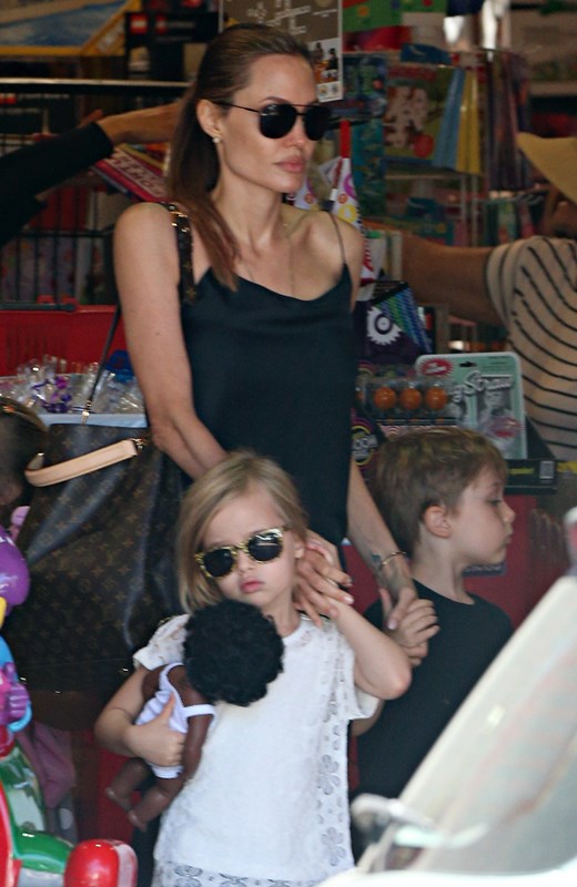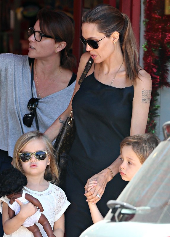 Here’s the Jolie being affectionate with Vivienne and Knox in Australia the other day.
