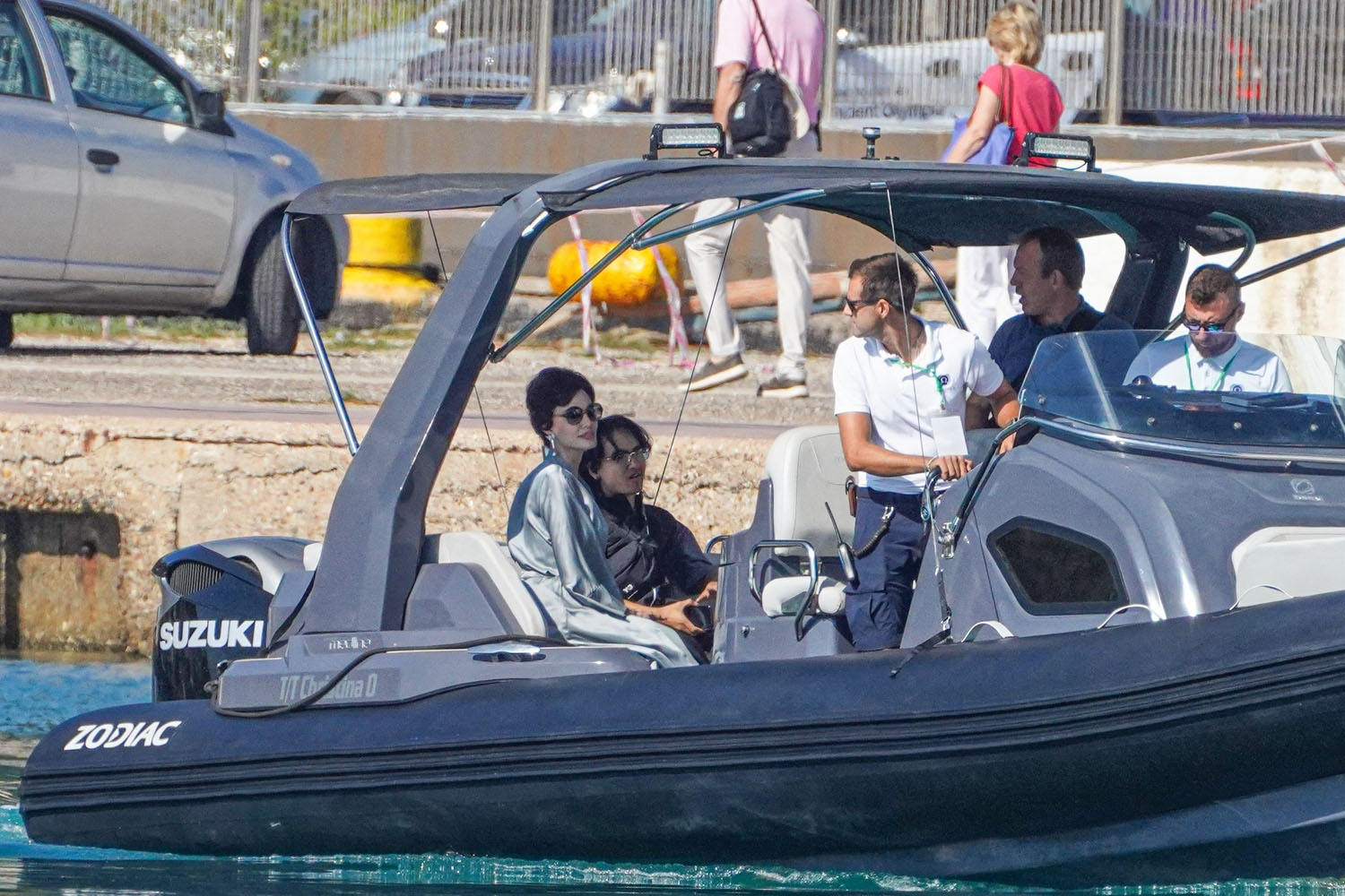 Over the weekend, Angelina Jolie and her eldest sons, Maddox and Pax, were seen in Greece, filming Pablo Larraín’s latest biopic, Maria. They were filming aboard the real yacht Christina O, which once belonged to Aristotle Onassis (the yacht was named after his daughter). Maddox and Pax are clearly working on Maria in some capacity, and we know how Angie likes to make her work into family business. I am still wondering when the nepo baby discourse comes for the Jolie-Pitt kids, but I suppose it will be when they more definitively branch out on their own, and we can judge their work separately from their mother’s.