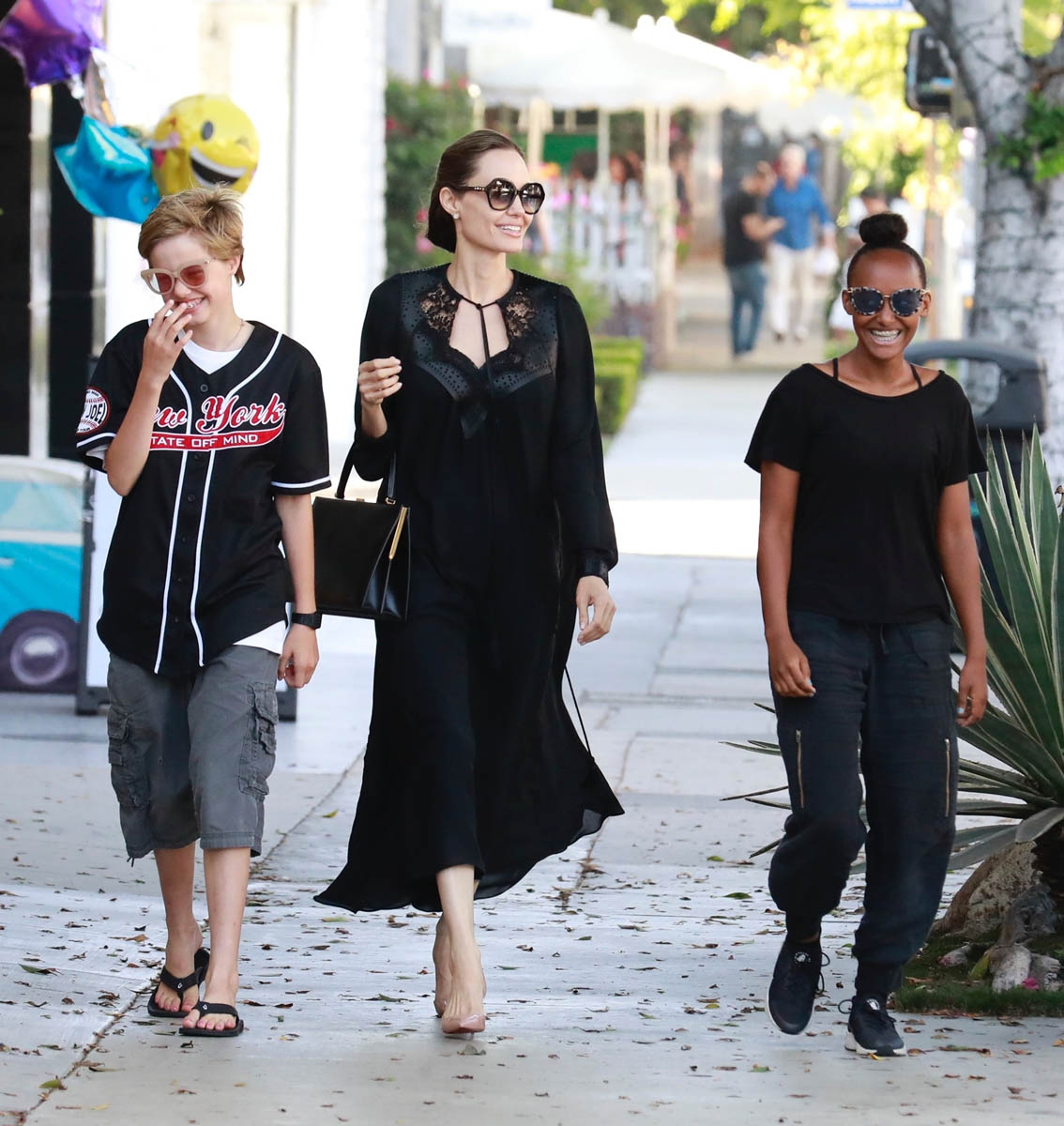 Brad Pitt sources have been dispatched to talk about what an asshole Angelina has been through the process and that she may or may not be jealous of Amal Clooney. Angelina’s answer has been to step out almost every day, accompanied by the children, showing us that she’s the one who spends the most time with them, and she’s the one they have such a good time with. As we know, she knows how to play the game too. And, for the most part, until World War Brange, Angelina has always been on the winning side of this PR game.